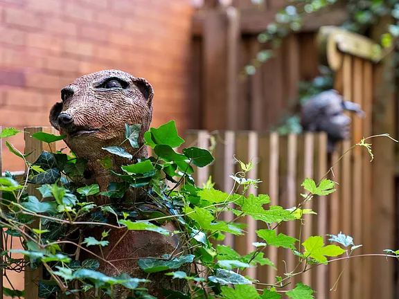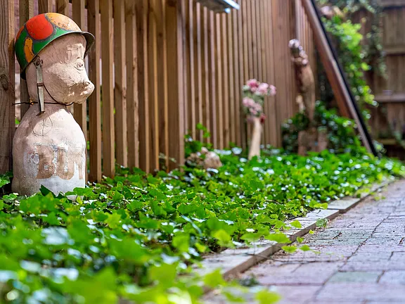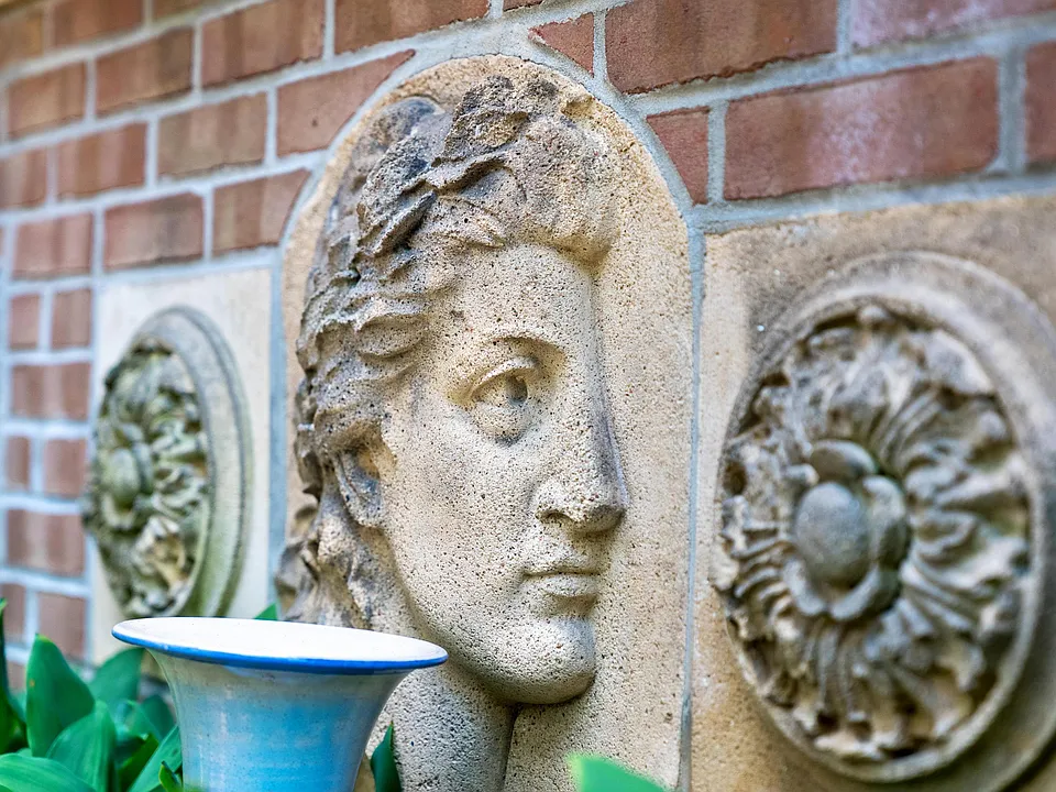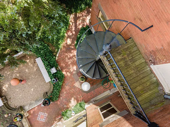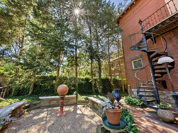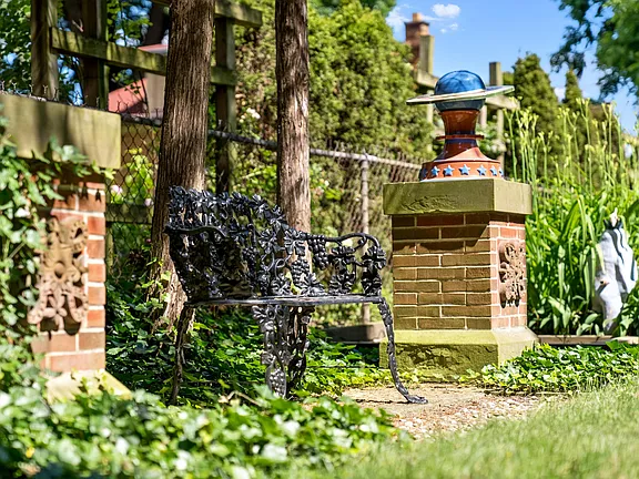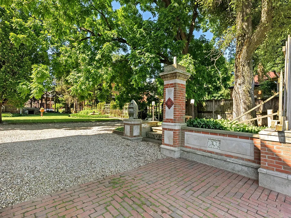 The exterior of the home continues the theme of craftsmanship and charm. The brick construction and classic detailing complement the gardens and courtyards that surround the residence. Mature landscaping adds privacy and ambiance, while multiple outdoor seating areas invite quiet moments of reflection, gatherings with friends, or peaceful afternoons in a truly exceptional setting.