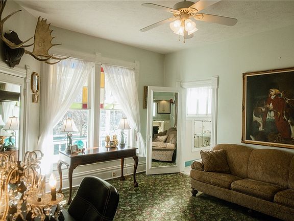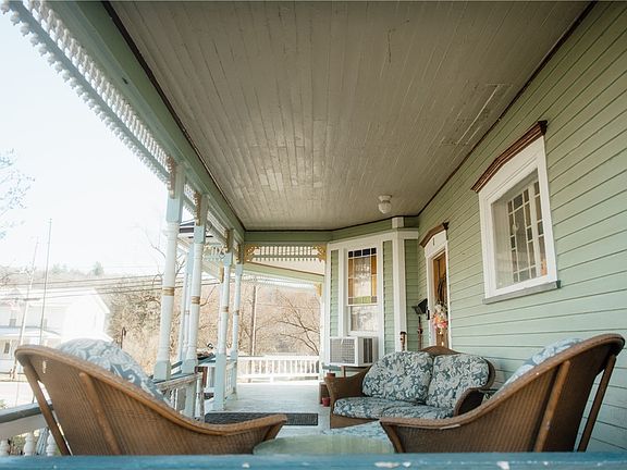 Set on a corner lot just blocks from the Allegheny River, the home is painted in earthy tones that blend with Tidioute’s natural setting. A broad wraparound porch anchors the façade, perfect for seasonal lounging. The fenced yard adds function for pets or gardening, and sidewalks make in-town strolls easy.