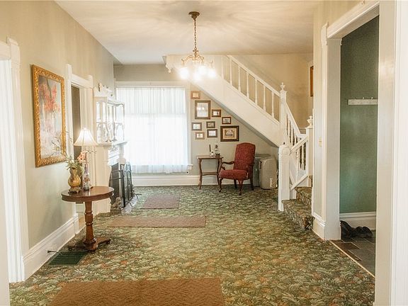 - Welcoming parlor with a fireplace and a sweeping staircase—a true Victorian greeting.