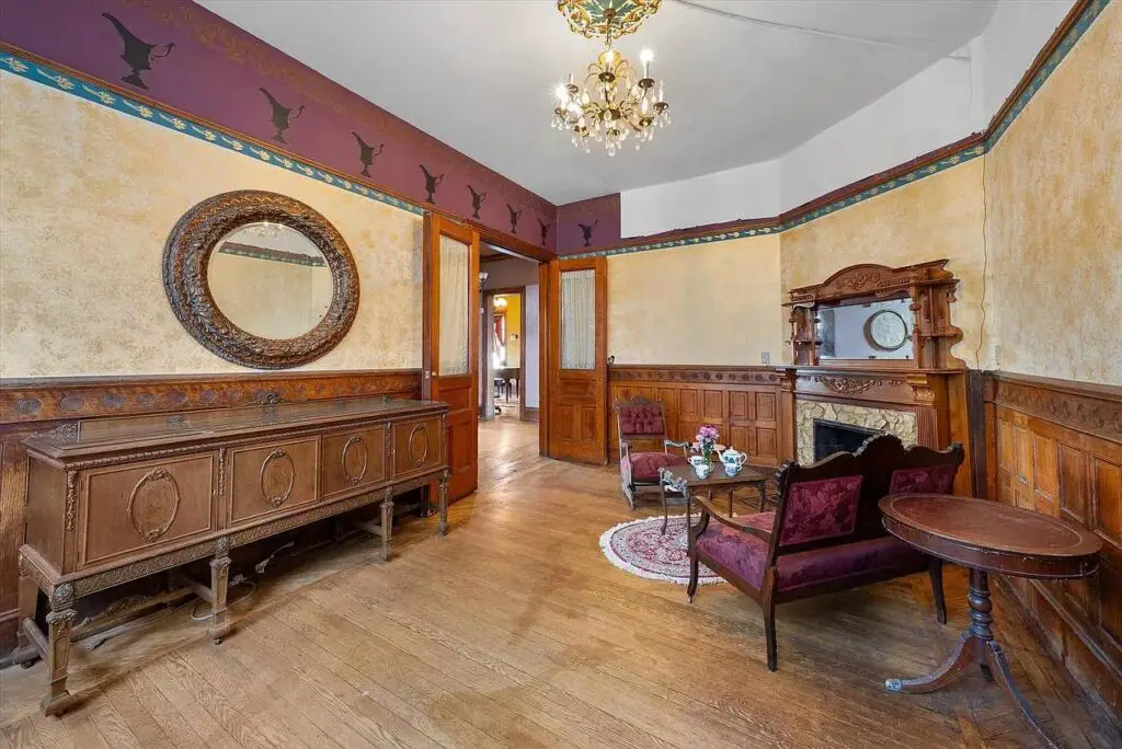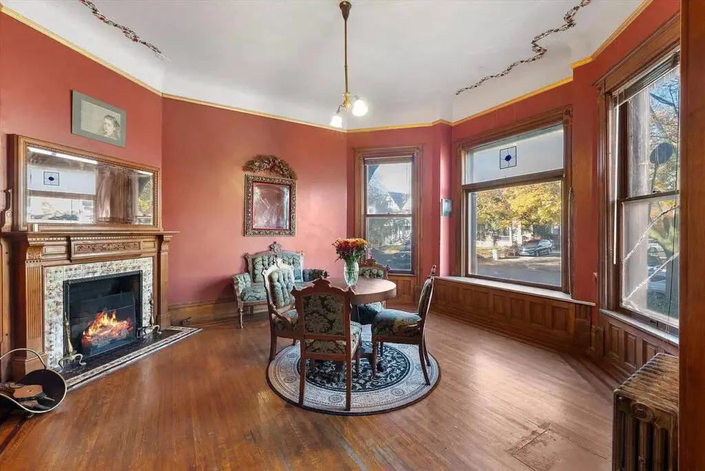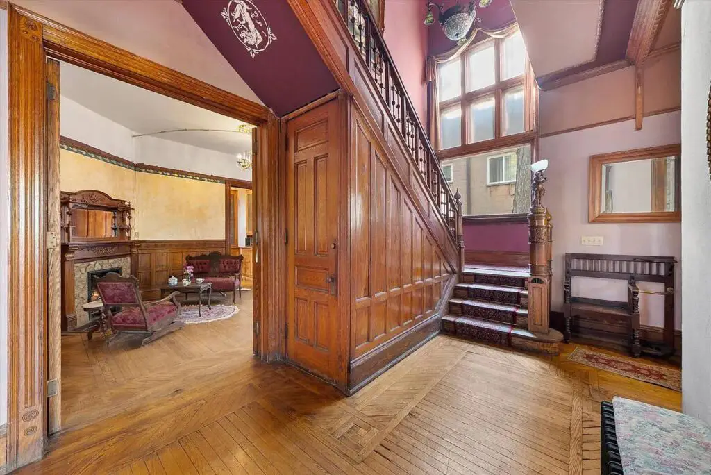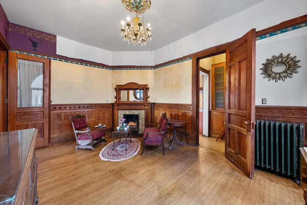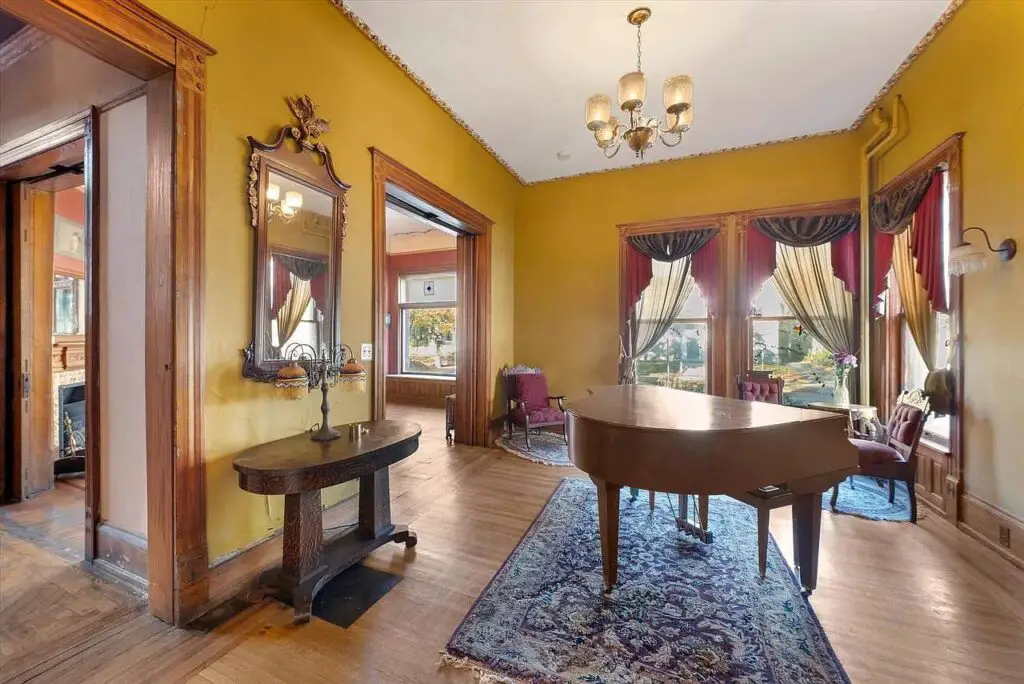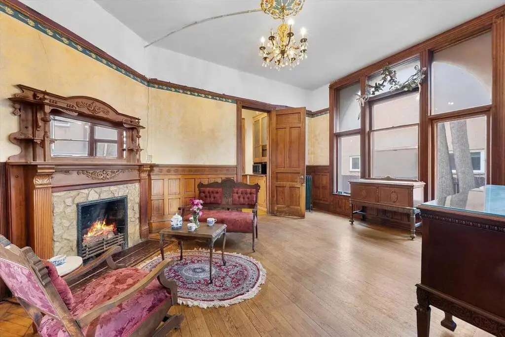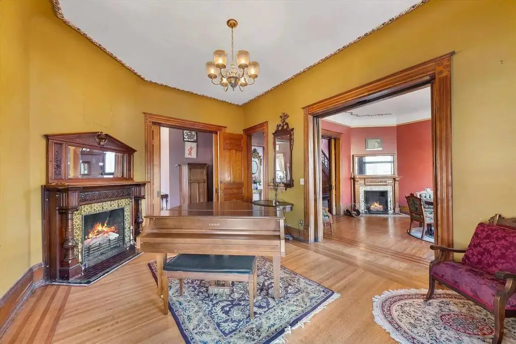 The main floor is particularly impressive in both layout and scale. Three separate parlors create a series of interconnected yet distinct spaces, each capable of serving a different purpose. Whether envisioned as formal sitting rooms, music rooms, or more relaxed gathering spaces, these parlors offer flexibility that modern open-concept designs often lack. Their separation allows for privacy and variety, giving the home a rhythm that encourages movement and conversation.