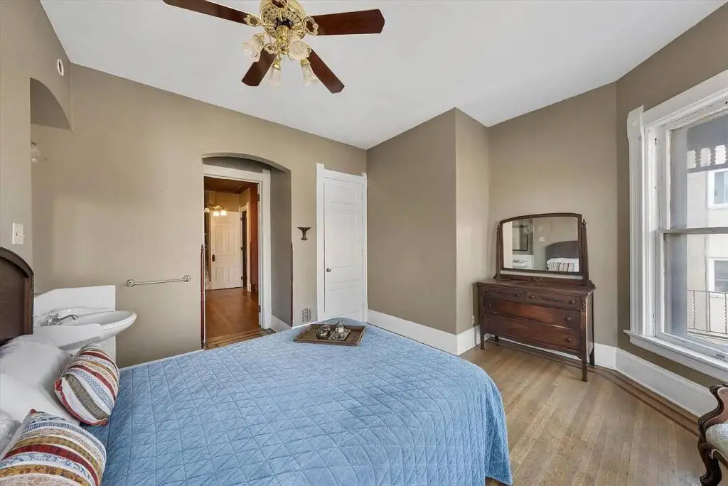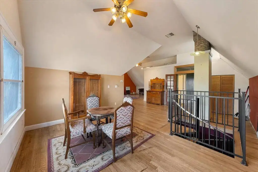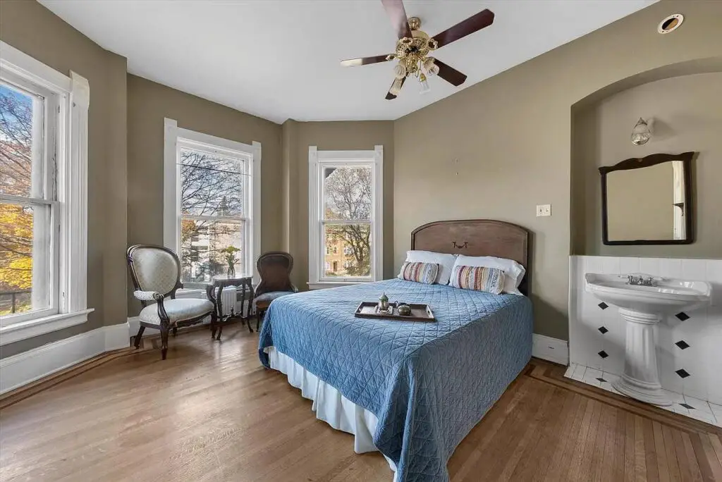 Outside, the property continues to impress. The sizable lot provides breathing room rarely associated with city living, especially within a federally recognized historic district. The fenced yard offers security and privacy, while the detached 3.5-car garage adds a level of practicality that complements the home’s grandeur. This combination of historic charm and functional amenities is a key reason properties like this remain highly desirable in the real estate market.