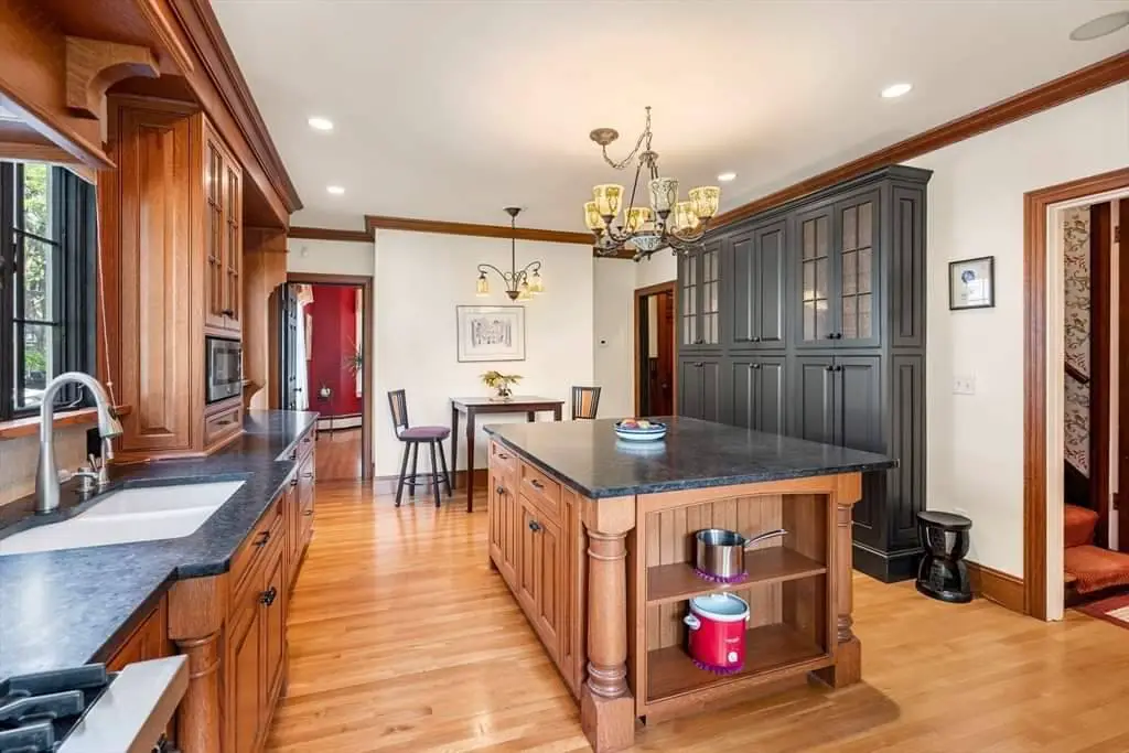 The chef’s kitchen introduces the home’s modern chapter. Thoughtfully designed to honor the architectural narrative while providing today’s expectations of luxury, the kitchen bridges past and present seamlessly. High-end appliances, refined surfaces, and a layout designed for both culinary work and gathering demonstrate how historic homes can support contemporary living without sacrificing their identity. It is a space where the home’s evolution feels natural, not imposed—where history and modernity coexist in balance.
