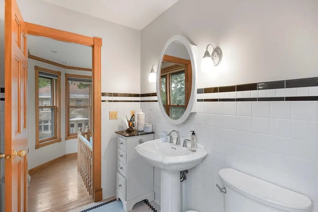 The bathrooms upstairs and down reflect the same blend of history and modern comfort present throughout the home. Two and a half baths are beautifully appointed, with fixtures and details that respect the home’s era while accommodating contemporary expectations. Tilework, cabinetry, and thoughtful updates ensure the bathrooms feel polished, inviting, and functional without compromising the Victorian atmosphere.