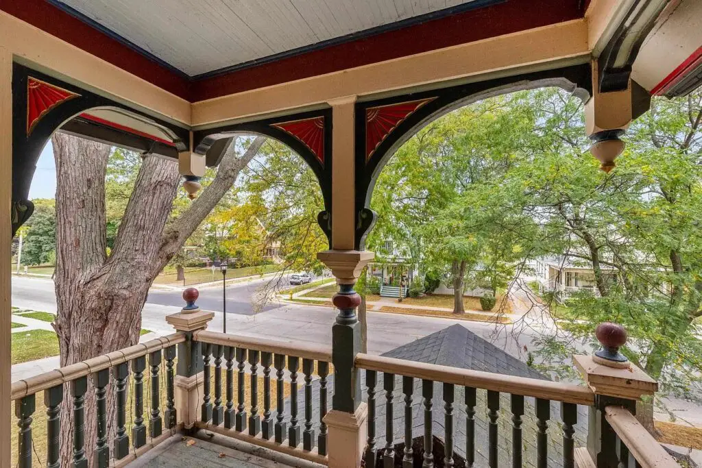 The approach to the property sets the tone immediately. Division Street is famous among Fond du Lac residents for its parade of historic houses—each unique, each embellished with its own interpretation of late Victorian style. Large trees arch overhead, casting lacework shadows across the sidewalks and lawns. Through this corridor of heritage, 294 East Division announces itself with color, complexity, and subtle grandeur. The Painted Lady tradition lives here in full glory, with contrasting shades accentuating every curve, spindle, bracket, and cornice. It is the kind of home that passersby slow down to admire, sometimes taking photos, sometimes simply pausing long enough to wonder about the world that existed when it was built.
