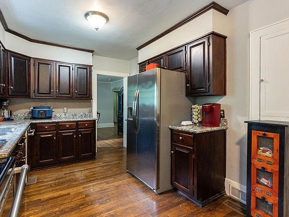 - Key Features: Stone exterior, original hardwood floors, arched doorways, main-level master suite, and a massive fenced yard.