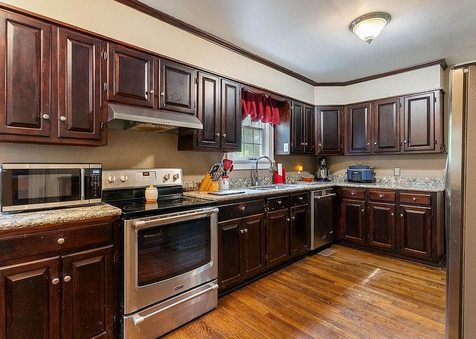 The floors are the real star of the show. They are the original hardwoods, and they have that beautiful glow that only comes with age. These floors have seen decades of life, and they are ready for many more. In the kitchen, things have been updated with nice Maytag appliances, so you get the old-world look without having to give up modern comforts. There is also a separate dining room which is great for family dinners.