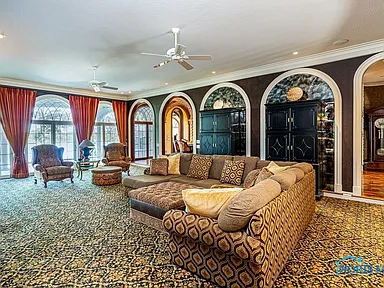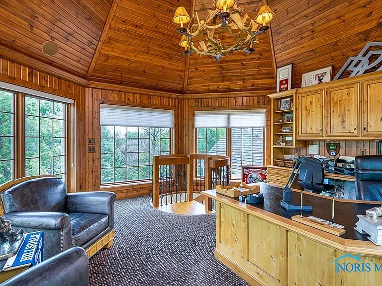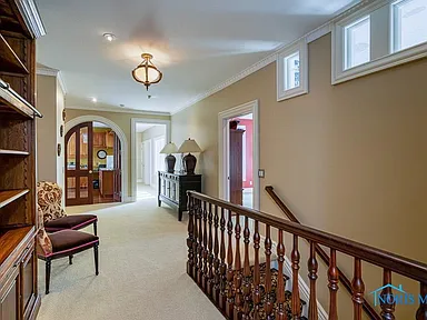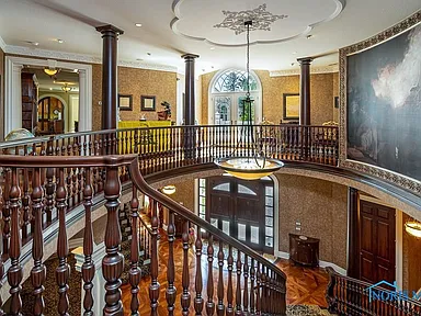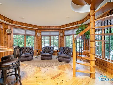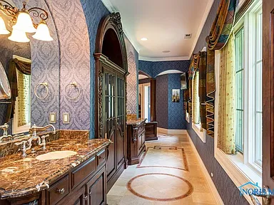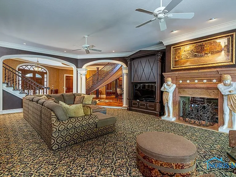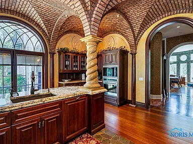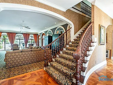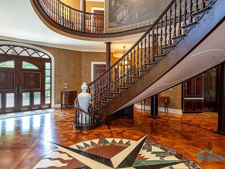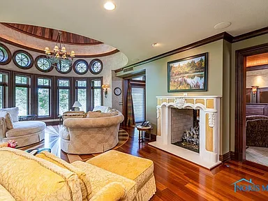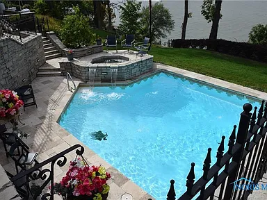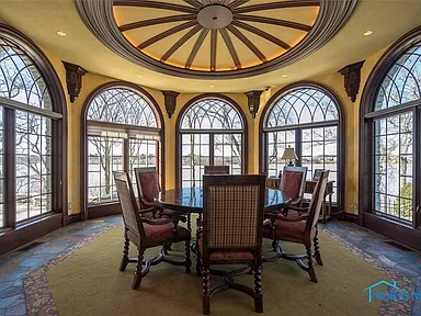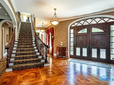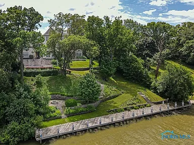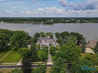 This property is perfectly situated in a wonderful, established neighborhood in Rossford, OH. Its unique location offers remarkably quick access to both Toledo and Perrysburg, whether traveling by car or, uniquely, by boat, offering unparalleled convenience for commuting or leisure. With its extensive amenities, vast square footage, and waterfront setting, the estate is also dubbed the “Perfect Pandemic Retreat,” offering a secluded, self-contained haven of luxury and comfort. The home includes an additional living quarter structure, providing flexible space for staff, in-laws, or guests. Security is assured with a comprehensive alarm system, and property maintenance is simplified with a sprinkler system and an HOA fee of just $10 monthly.