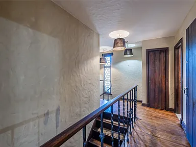 From the moment you arrive, the property’s timeless beauty is unmistakable. The stately façade boasts a stucco exterior, tile and slate roofing, and mature landscaping that complements the home’s historic appeal. A long blacktop driveway leads to the attached two-car garage, offering both convenience and functionality.