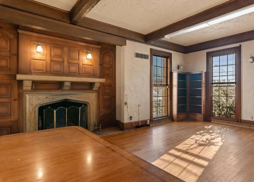 The sheer size of the house is incredible, with nearly 5,000 square feet to explore! Every room seems to offer another delightful detail. Throughout the main floor, you’ll find extensive wood paneling and tall, high ceilings that make the rooms feel open and airy. Look closely at the walls and ceilings, and you’ll see beautiful period millwork, including detailed crown moulding and wide baseboards—a testament to the skill of the original builders.