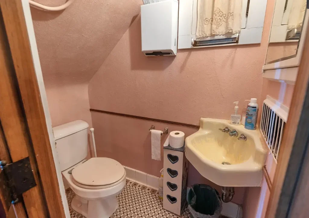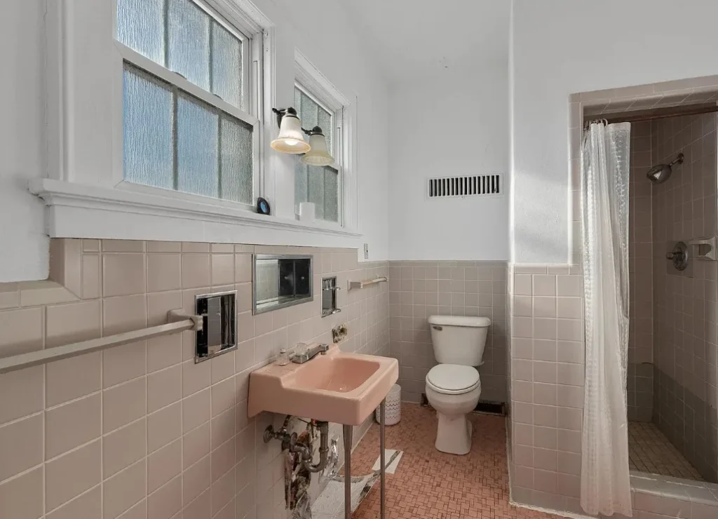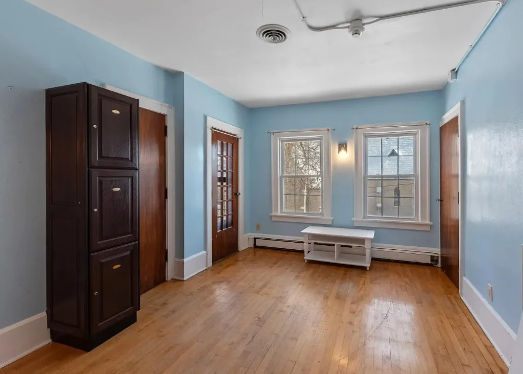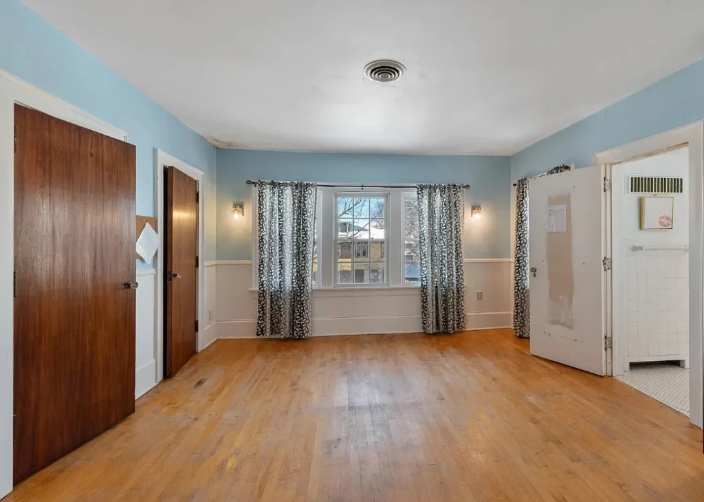 The main rooms hold several architectural gifts that will charm any lover of old homes. Imagine hosting dinner parties in the formal dining room, or simply enjoying the history around you. The living spaces feature gorgeous details like French doors that open up the rooms and let in the light. In some areas, you’ll find sections of lovely wood floors already exposed, but a little secret for the new owner is that all the original wood floors are likely still hidden and protected underneath the current carpeting, waiting to be brought back to life!