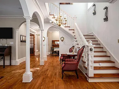 From the moment you arrive, the home’s exterior radiates grandeur. Its signature Victorian turrets, gables, and wraparound porches immediately set the tone for the architectural detail found throughout. Constructed with a blend of frame, vinyl siding, high-quality drywall, and a sturdy shingle roof, the property maintains its historic character while ensuring long-term durability.