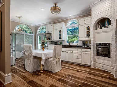 The kitchen area comes fitted with all the modern conveniences needed for daily life and entertaining. Appliances include an electric oven, electric range, microwave, dishwasher, disposal, and an electric water heater. The combination of utility and historic ambiance creates a truly inviting cooking environment.