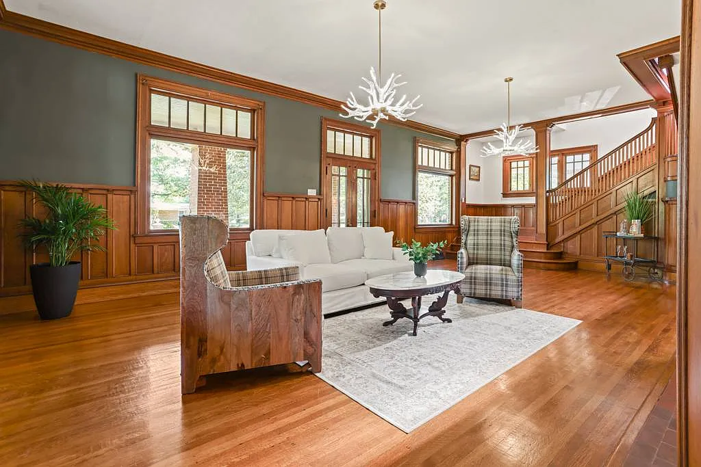 From the moment the home comes into view, it is clear that this is not a structure designed to fade into the background. Its proportions, rooflines, and expansive porches reflect a time when houses were statements of stability and intention. Built in the early twentieth century, the home has been carefully preserved, allowing its original character to remain intact while accommodating the expectations of modern living. This balance is often discussed in real estate listings, but rarely achieved with the level of integrity found here.