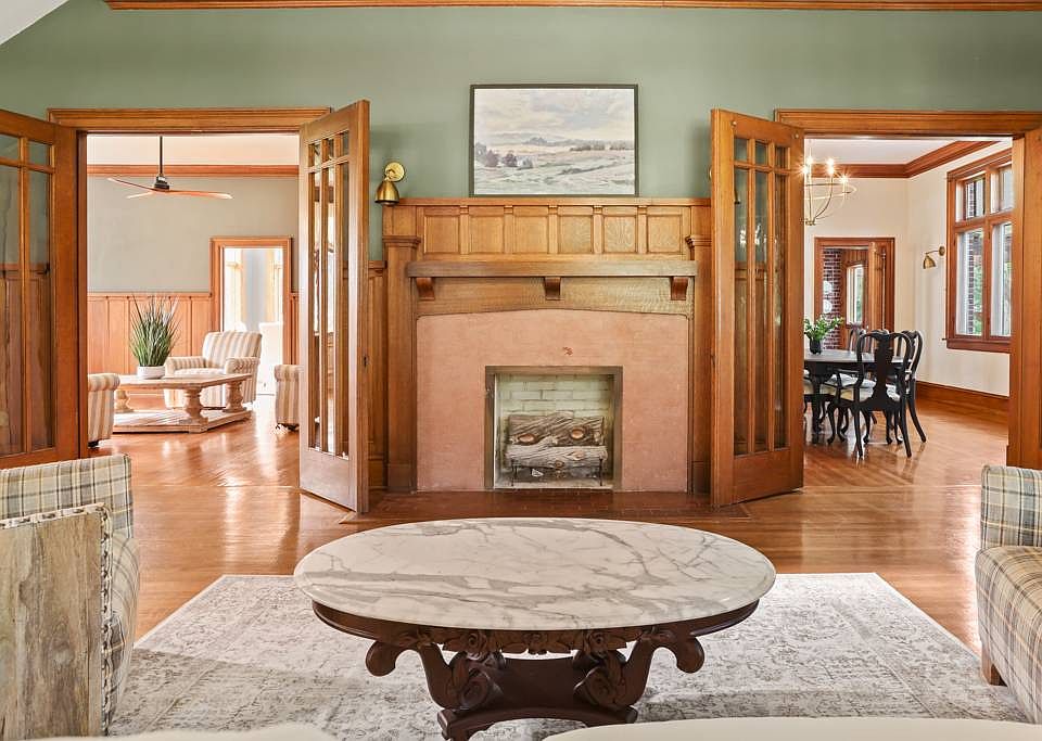 The main living spaces are both grand and inviting. Multiple living areas allow the home to adapt to different rhythms of daily life, from quiet evenings to larger gatherings. Fireplaces, five in total, serve as visual anchors throughout the house, adding texture and a sense of comfort. Even when not in use, they contribute to the atmosphere, signaling the home’s age and its role as a gathering place over decades. In the context of real estate, features like these often define emotional connection, influencing buyers in ways that square footage alone cannot.