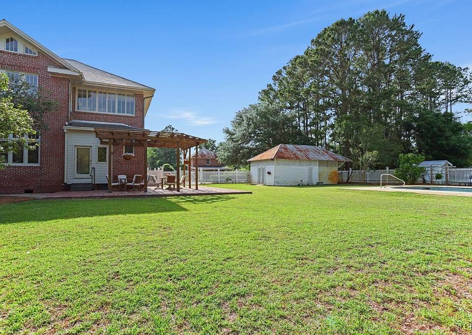 The surrounding grounds offer further flexibility. In addition to the immediate fenced pool area with its brick terrace and pergola, there is ample additional yard space that could support gardens, equipment storage, or future development. A secondary backyard or potential second lot adds a layer of opportunity that is rare in comparable properties. In real estate terms, this adaptability enhances both lifestyle value and long-term investment potential.