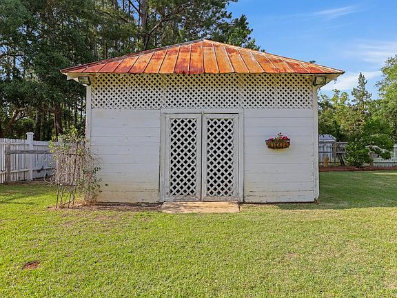 Additional outbuildings contribute to the sense that this is a property designed to be used, not just admired. A two-story garage and workshop space provides room for hobbies, storage, or creative pursuits, while other structures support pool operations or gardening needs. Collectively, these buildings extend the usable footprint of the property well beyond the main residence, offering more than 1,200 square feet of repurposed bonus space. For buyers scanning listings for a home that offers more than the expected, these elements can be decisive.
