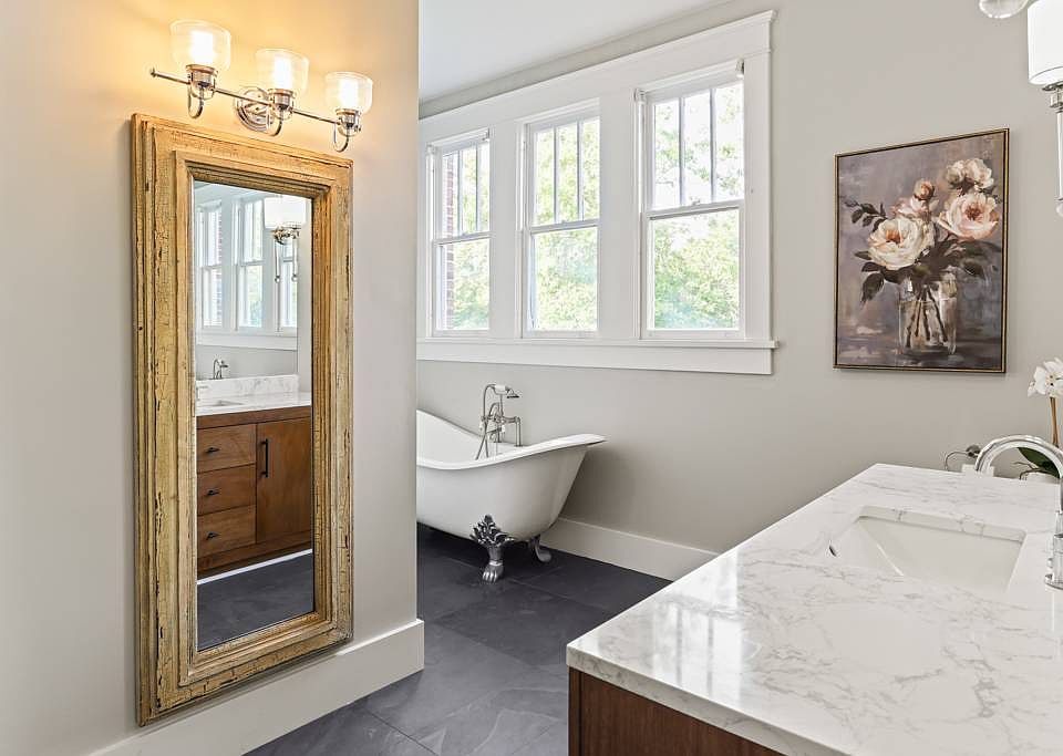 Upstairs, the bedrooms continue the theme of generous proportions and individuality. Each room carries its own personality through color, light, and layout, while maintaining cohesion through shared materials and finishes. The bathrooms have been updated with sensitivity, offering comfort without erasing the past. This approach is particularly important in historic homes, where overly modern interventions can feel jarring. Here, the updates enhance rather than compete with the original design.