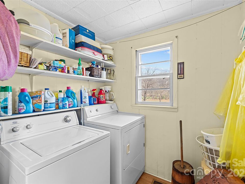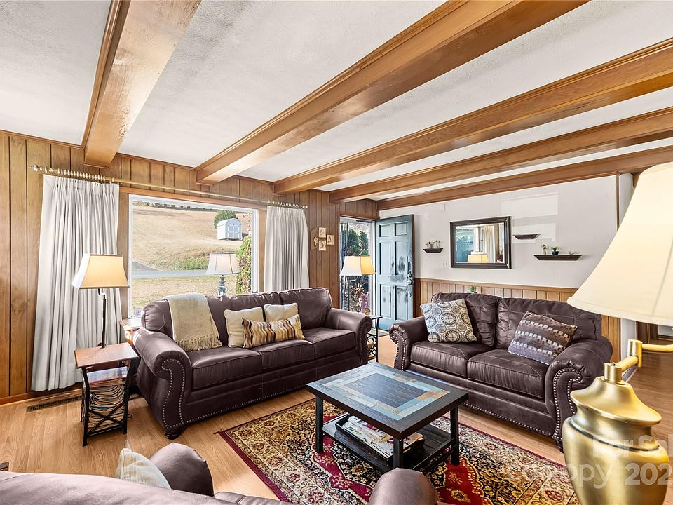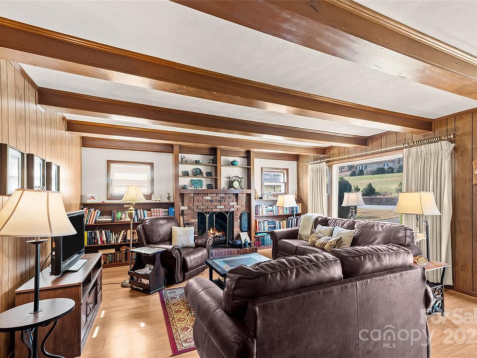 There is also a covered/carport area attached to the building. the home is situated on 1.24 acres of level land and a stream bordering the back of the property. Convenient location in Lenoir with a short drive up to the mountains.