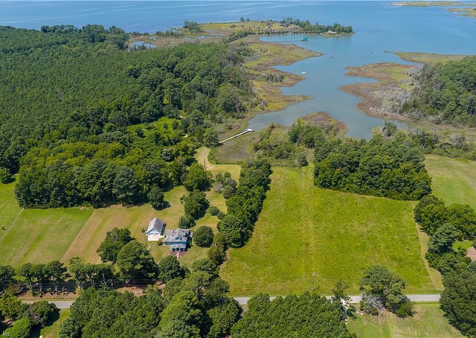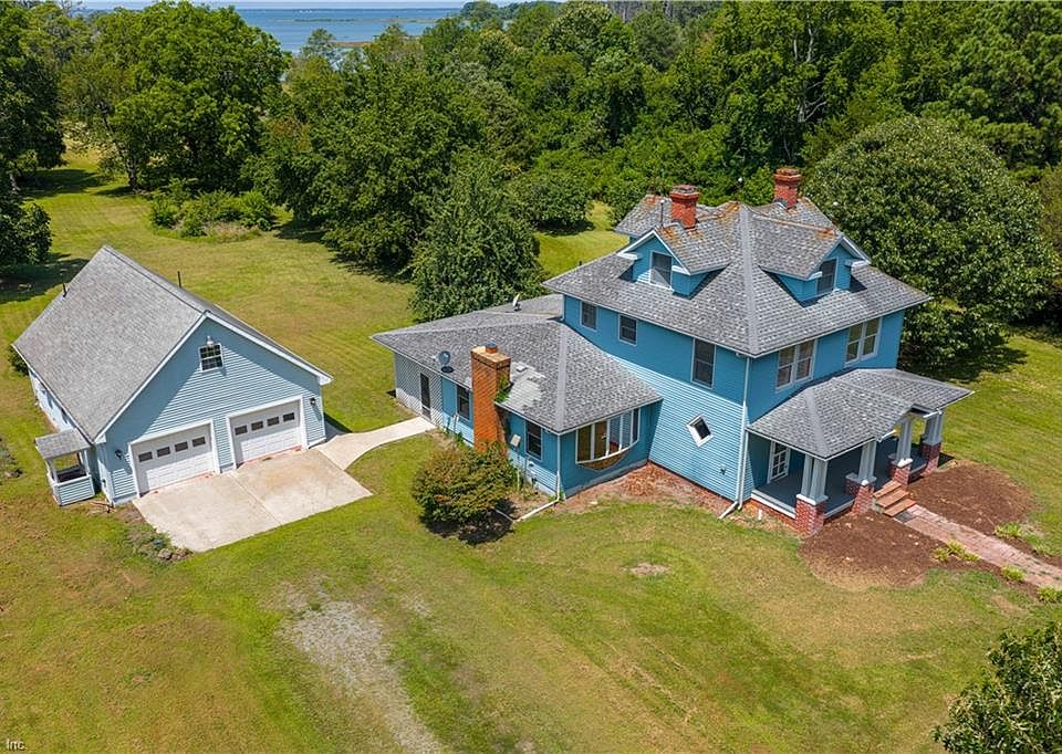“Azalea Acres” is a gorgeous 14.5 acre waterfront setting featuring a private dock for kayaks & shallow draft boating plus a separate building lot on Pepper Creek in Mathews, VA. Marina nearby for your larger boats. The main home is a wonderfully vintage American Foursquare appointed with a full front porch, rear screened porch, full walk-up unfinished attic (the Crow’s Nest), BRAND NEW HVAC on 2nd floor! Detached 26X38 detached garage with/fabulous Summer Kitchen & full bathroom, the perfect spot for cooking crabs & hosting outside gatherings. The 2nd floor is finished over the garage even more storage/expansion. Hobbyists, collectors & backyard mechanics unite to fall in love with the 24X28 A-frame Barn with electric & water. Fruits trees, blueberries, blackberries, huge fig, all producing. A truly special home w/classic 1920’s charm & modern comforts, livable yet needs little TLC. Breezeline 2Gig speeds hooked up. **Appraisal in hand for $665,000 means you have instant equity!