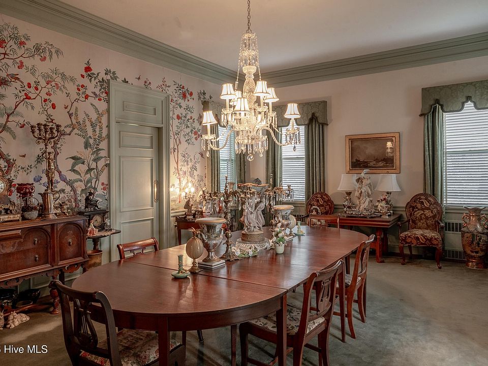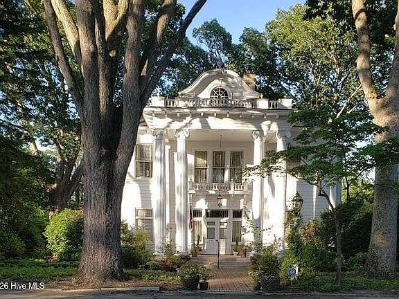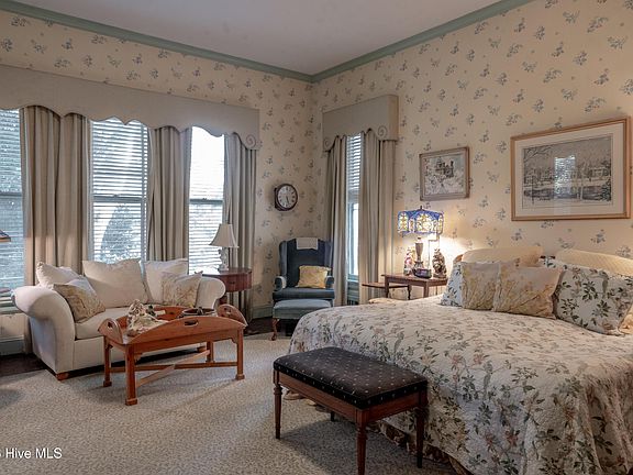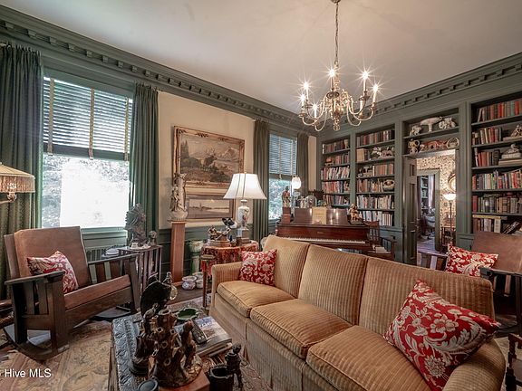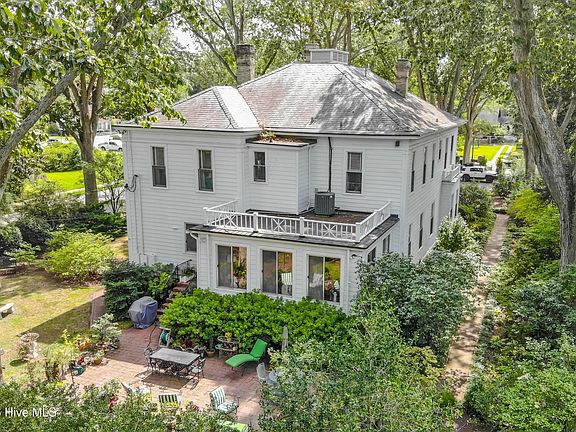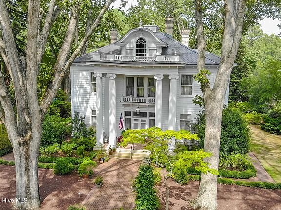 Built in 1903, this home sits on nearly 2 acres of meticulously landscaped grounds with rare to NC Coastal Redwood trees. With its rich historical charm, the home can be a private residence, Bed & Breakfast, event venue, or investment property. There is a working passenger elevator in the house! Each very large bedroom has its own bathroom. There is a separate carriage house with former 2br/1 ba (not included in count) living space.