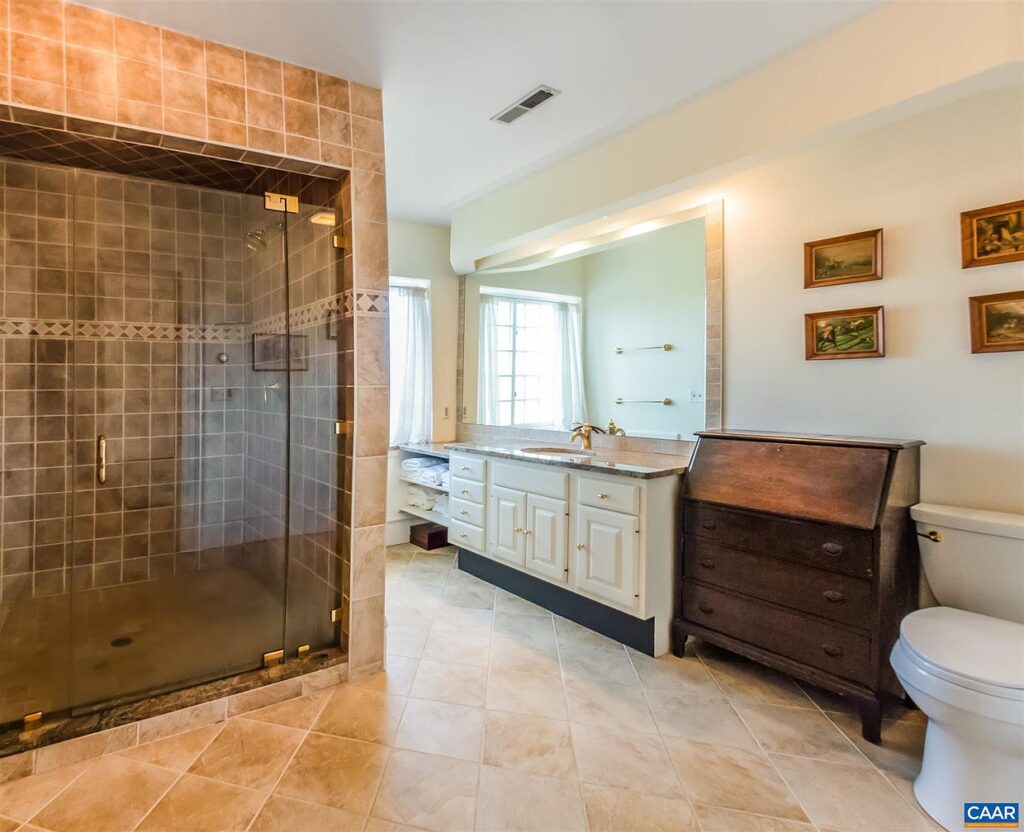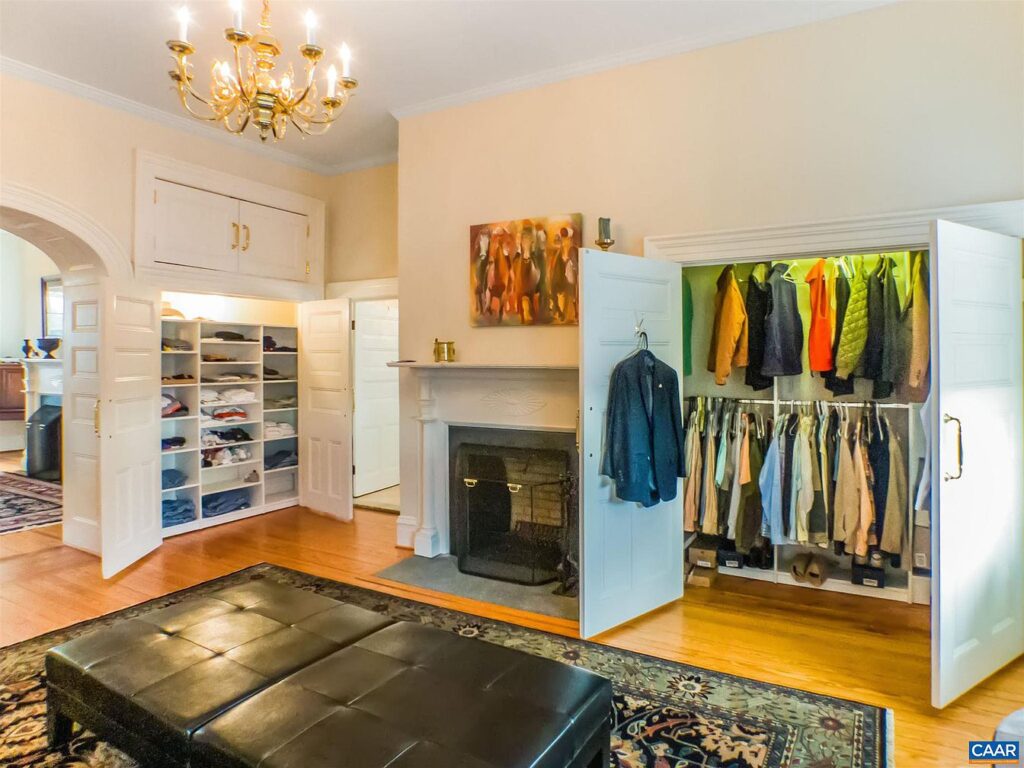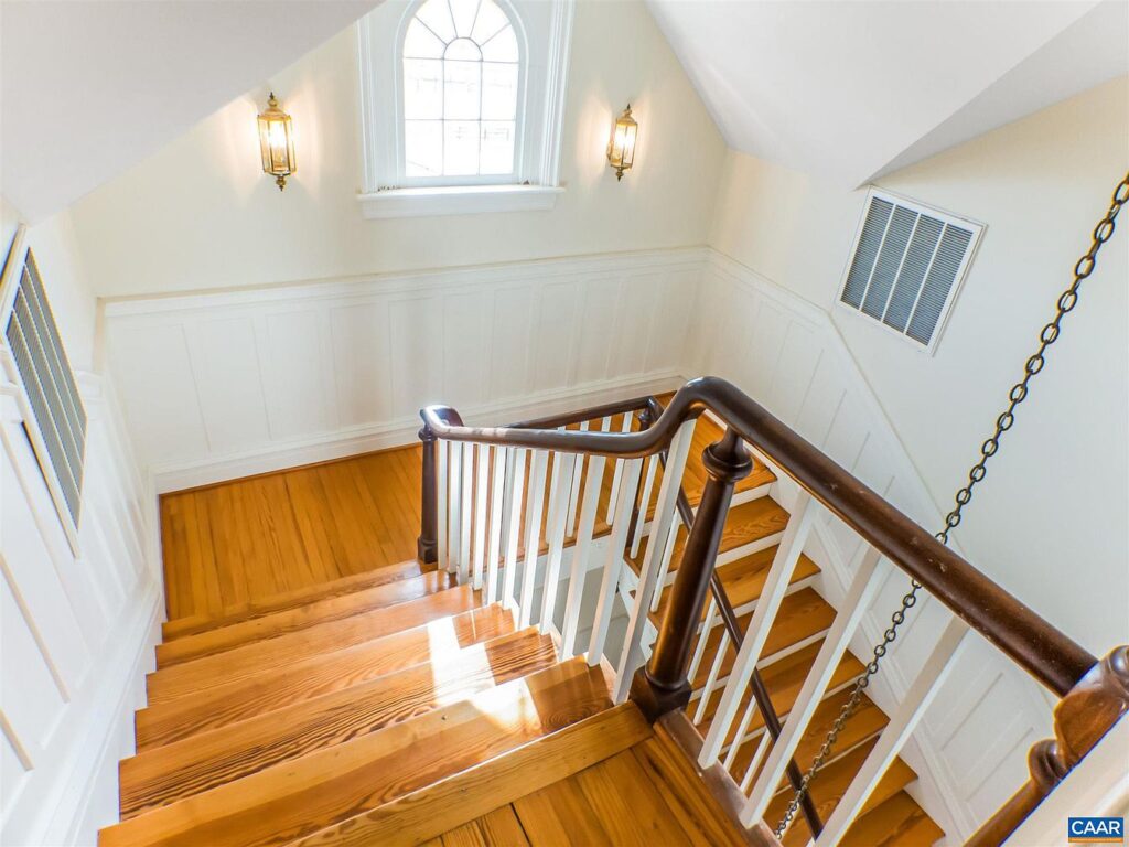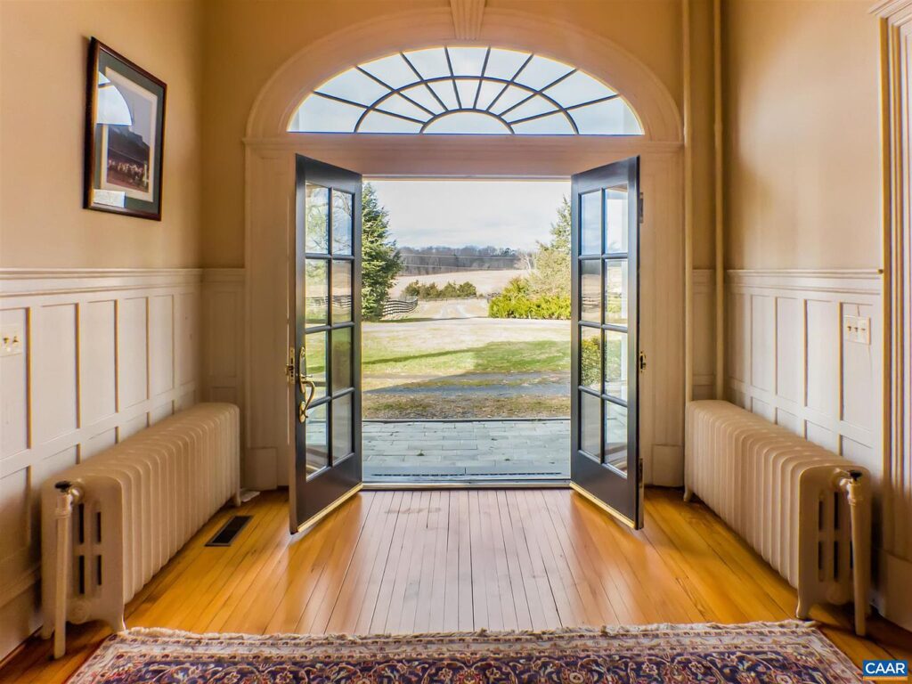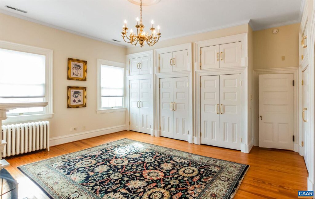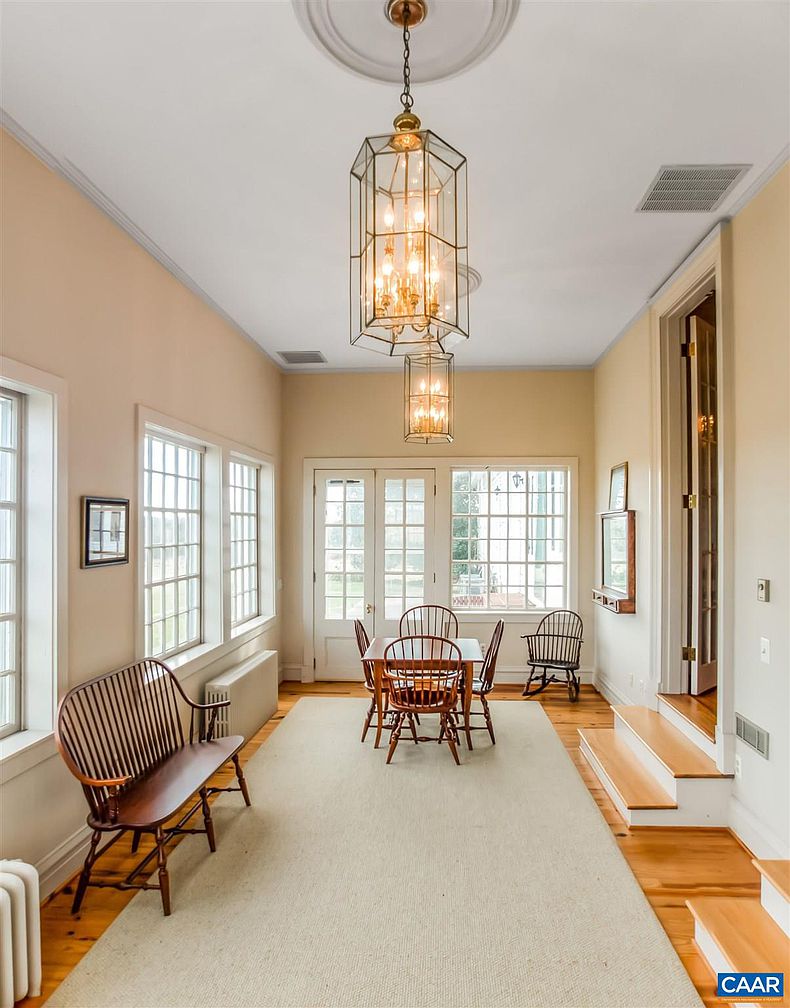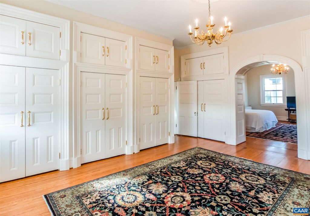 Among its most striking features is the grand staircase, a centerpiece of the entrance, and the dramatic double front doors. The home is completed by a covered front porch and a balcony, offering serene spots to enjoy the surroundings. Perhaps the most unique feature is the widow’s walk, which provides unobstructed, sweeping views of the picturesque Virginia countryside and the sprawling estate below. With four bedrooms and five well-appointed bathrooms, the residence effortlessly combines historic charm with modern functionality.