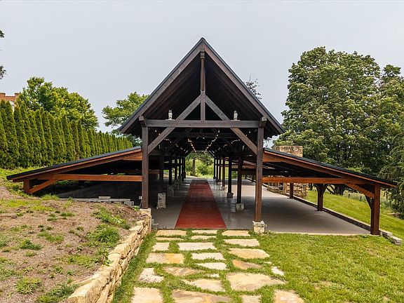The estate is fully equipped for business with a professional restaurant and a massive timber frame pavilion ready for weddings and festivals. This versatile property for sale is a turnkey investment for anyone looking to enter the hospitality or event industry.