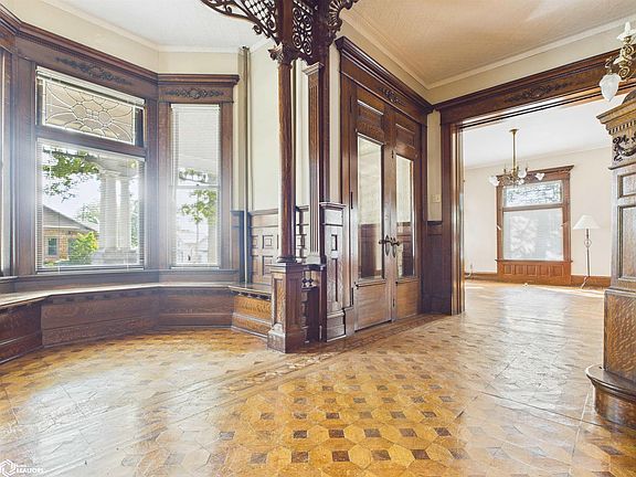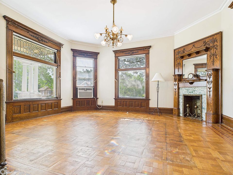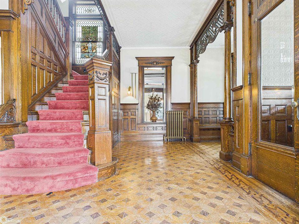 This home was built in 1902 and designed by George F. Barber. If you know old houses, you know that name means quality. Barber was one of the most famous architects of his time, and his homes are known for their unique shapes and fancy details. This three-story masterpiece was originally built for John Leisy, and it has been kept in wonderful shape for more than 120 years.
