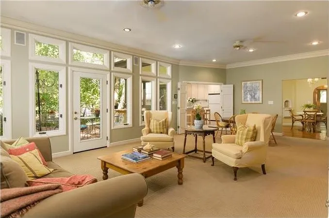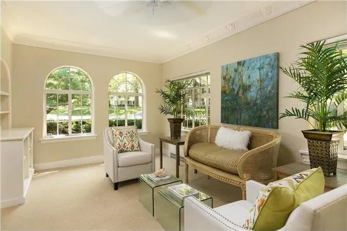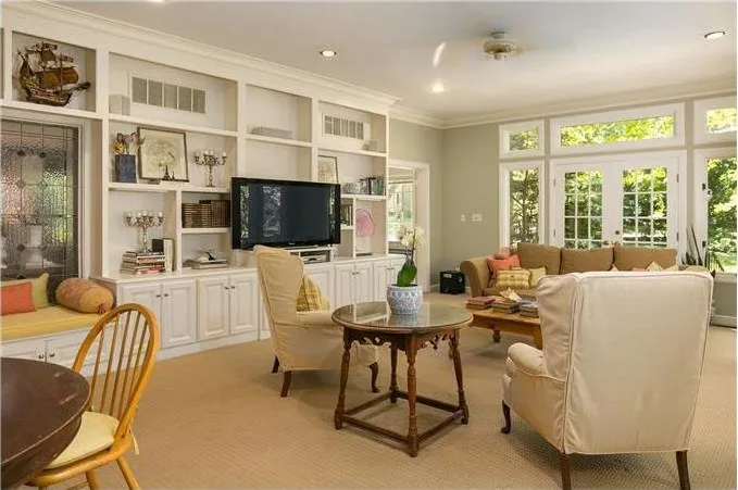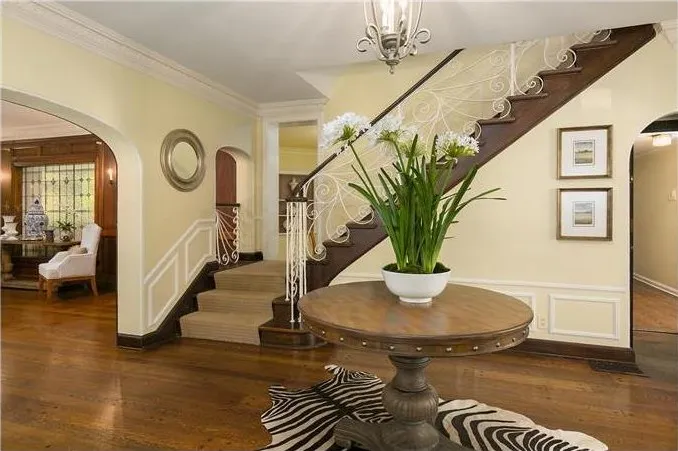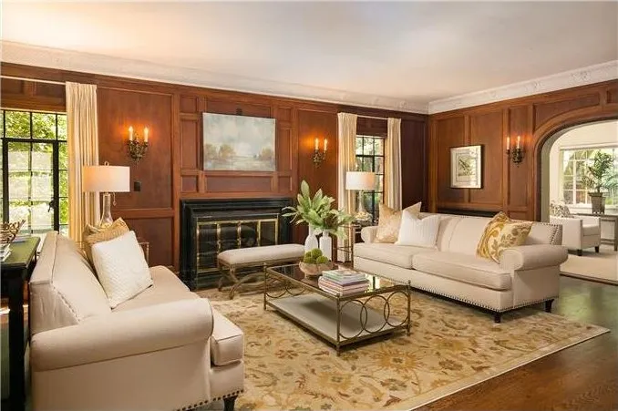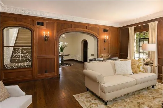 Perhaps the most significant alteration is the removal of the large Tudor portico, which once provided depth and ornamentation to the front façade. In its absence, the entryway now presents a cleaner, more streamlined profile, though some might argue it diminishes the architectural soul of the home. Additionally, much of the original landscaping was cleared away, replaced with a more minimal, open layout that complements the modern aesthetic but lacks the romantic lushness of the original garden.