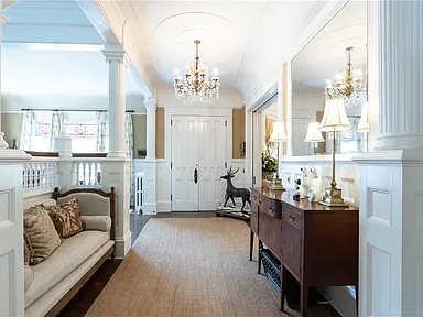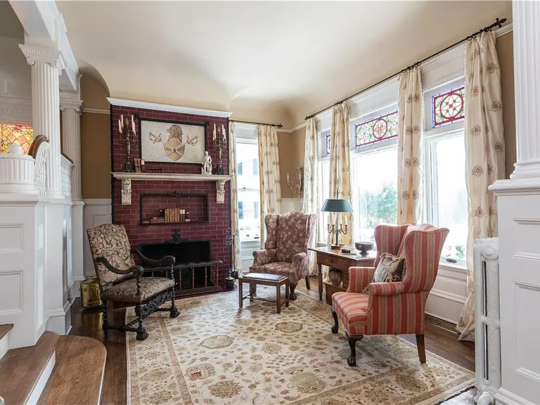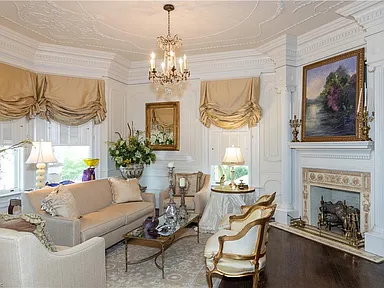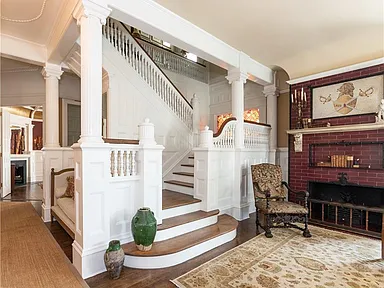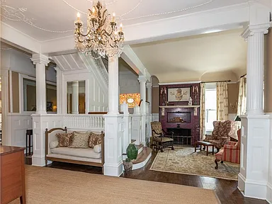 Stepping into the grand foyer feels like crossing the threshold into another era. High ceilings, rich architectural details, and warm natural light set the stage for a home crafted with masterful attention. The foyer leads directly into his and her parlors—beautifully preserved spaces ideal for hosting guests, relaxing fireside, or celebrating special occasions.