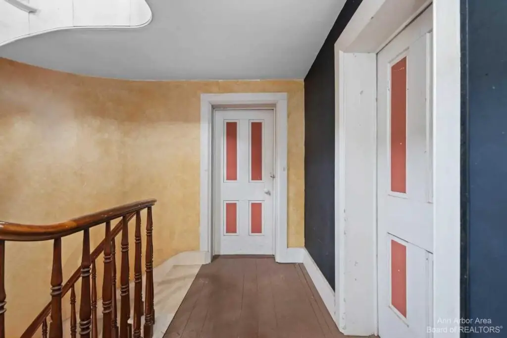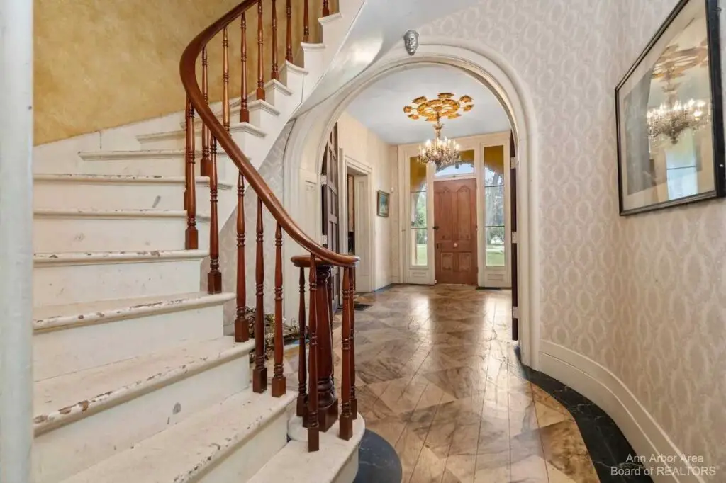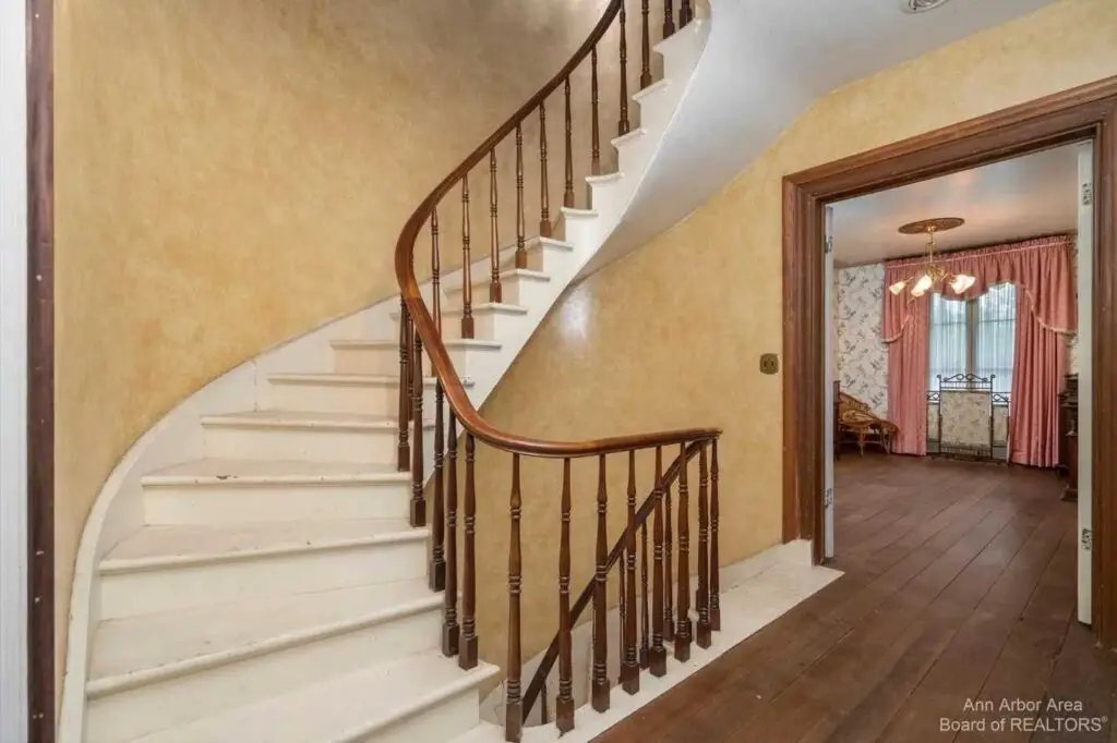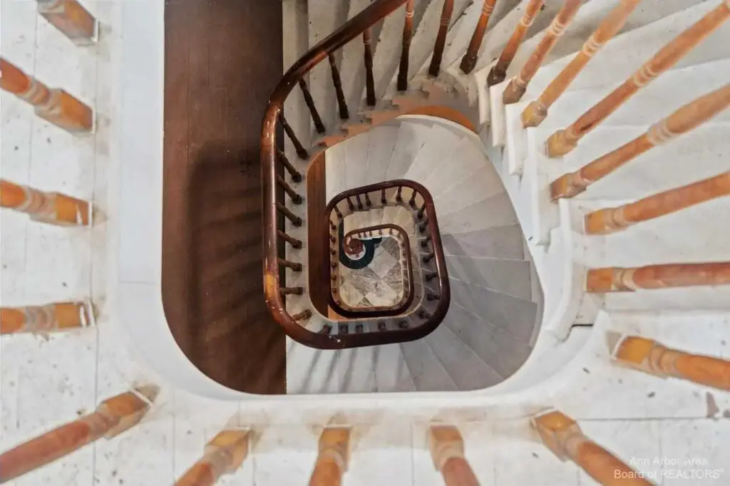One of the longest privately owned spiral staircases in Michigan, it serves as a stunning architectural centerpiece and a testament to 19th-century craftsmanship.