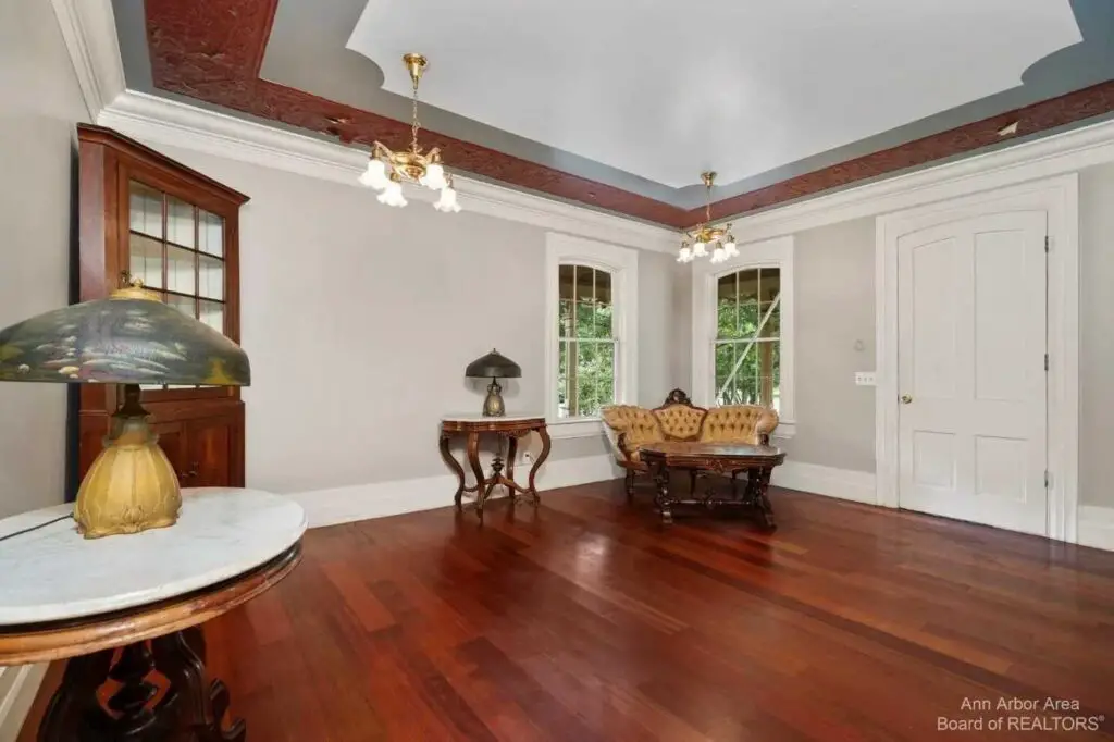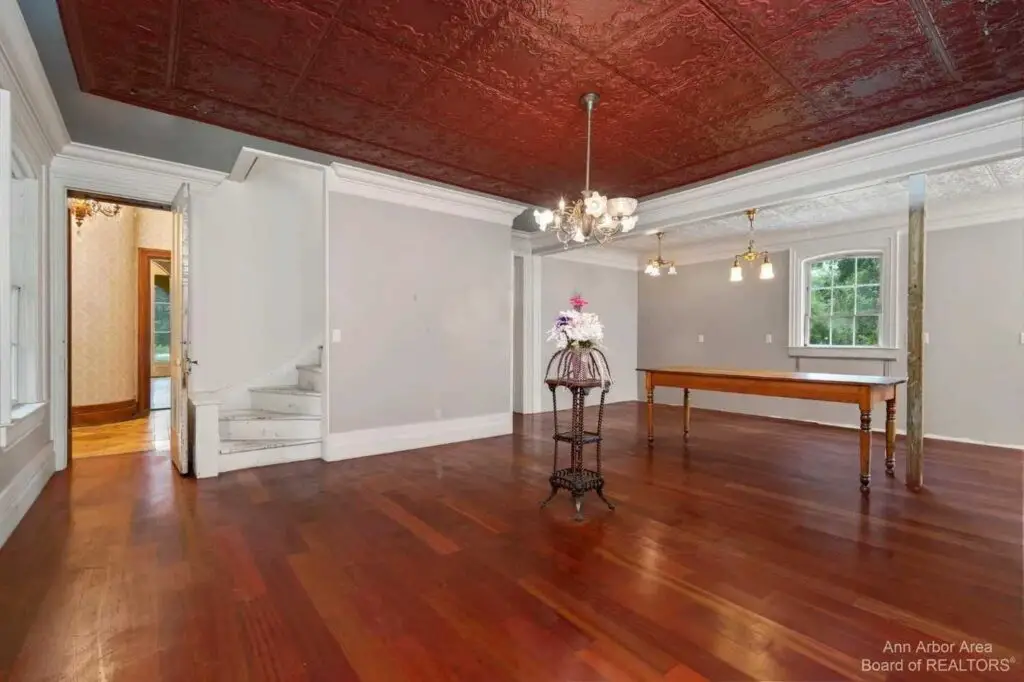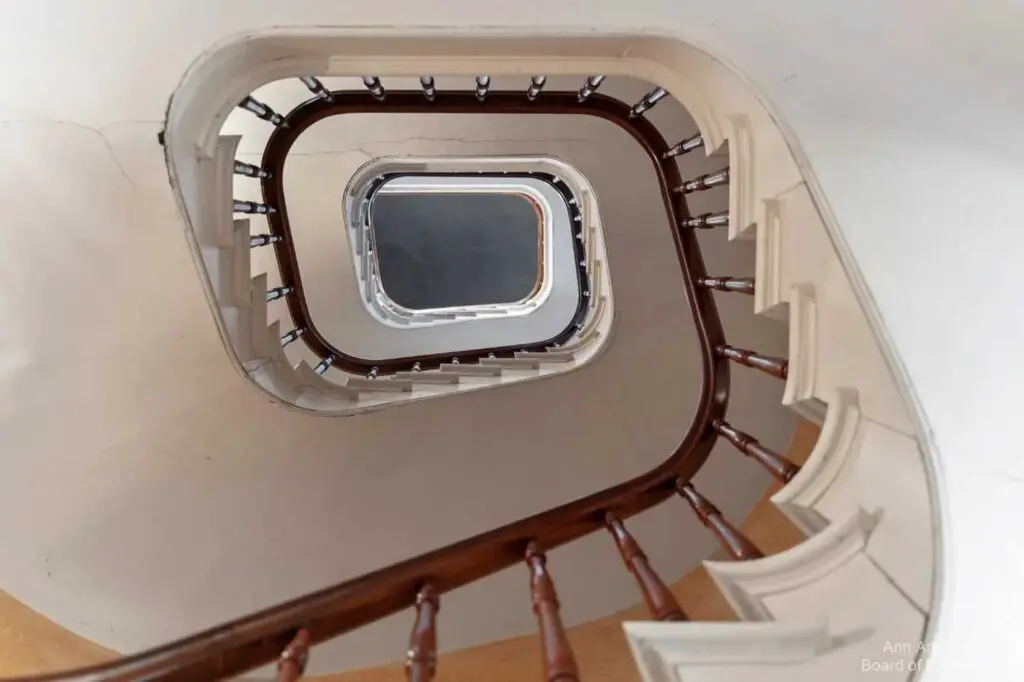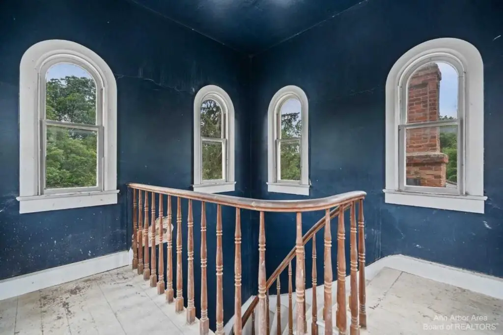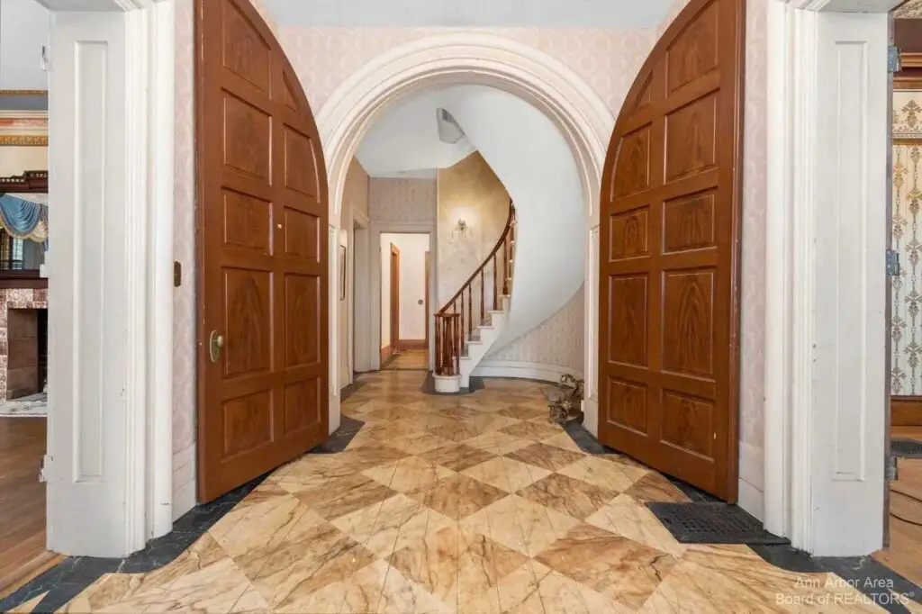 One of the longest privately owned spiral staircases in Michigan, it serves as a stunning architectural centerpiece and a testament to 19th-century craftsmanship.