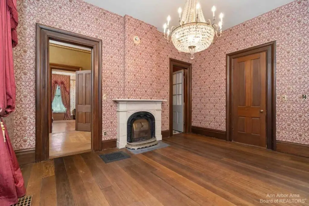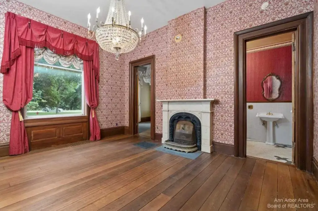 Beautifully detailed fireplaces are positioned throughout the residence, elevating both the ambiance and the historical character.