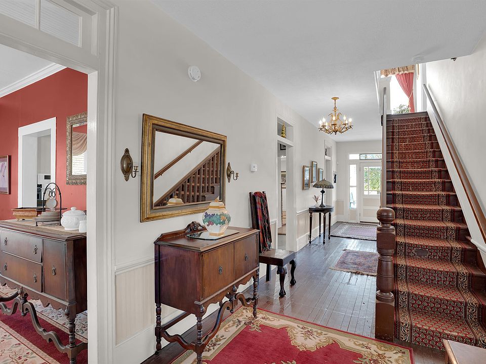 The outdoor spaces and ample parking provide incredible versatility for this historic residence for sale, whether you plan to use it as a private home or a business venue. The wrap-around porch and mature oak trees truly capture the essence of a slower, more peaceful pace of life.