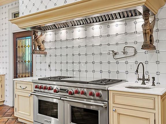 - Gourmet Kitchen: Features a massive island, hand-painted Italian-tile pizza oven, walk-in pantry, and a separate catering kitchen.