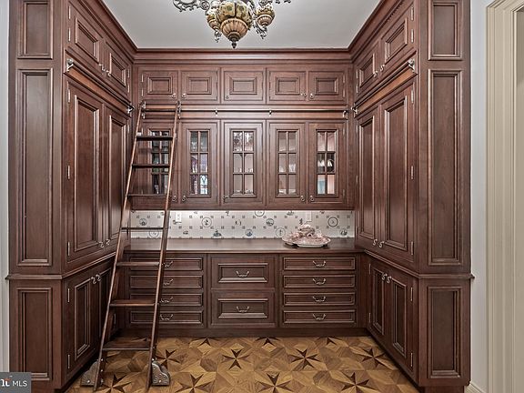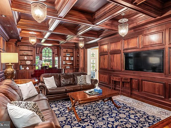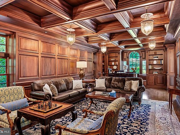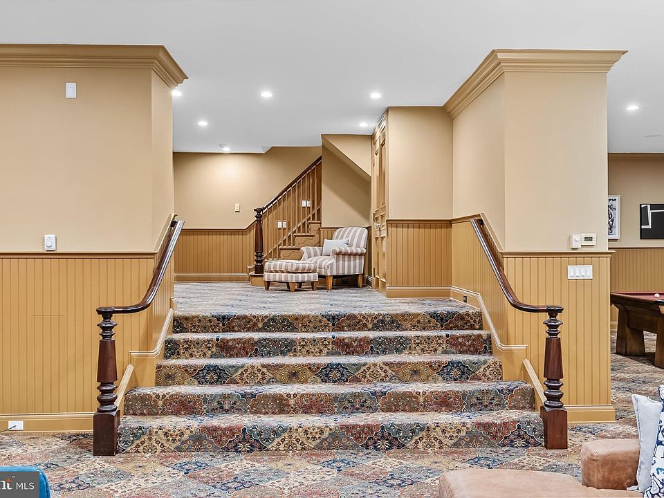 A rich mahogany library with coffered ceilings and fireplace is perfect for work or winding down. Downstairs, the finished basement offers surprises at every turn: a wine tasting room, craft space, theater stage, full kitchen, billiards area, and more—ideal for both creative escape and large-scale entertaining. Upstairs, the primary suite is a private retreat with dual bathrooms, custom closets, and a tucked-away office space. Three additional bedroom suites grace the second floor, with even more flexible rooms on the third—perfect for guests, teens, or staff quarters.
