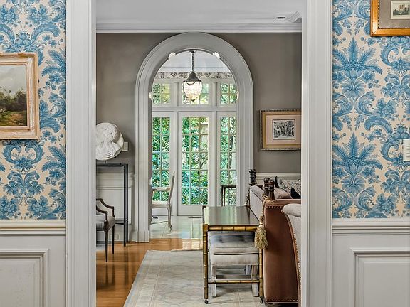 From the moment you step into the grand center hall, you’re met with impeccable craftsmanship: floor-to-ceiling windows topped with fanlights, layered custom millwork, and original detailing that whispers of the home’s rich heritage. The traditional living and dining rooms provide formal entertaining space, while a cozy screened-in porch invites easy conversation and quiet morning coffees. For the modern entertainer and culinary enthusiast, the kitchen wing is a dream.