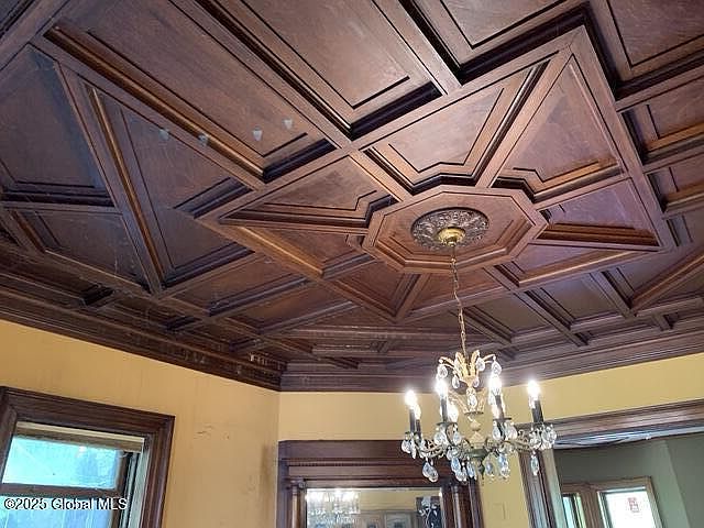 - Ceilings: Stunning coffered ceilings in the dining room and tray ceilings.