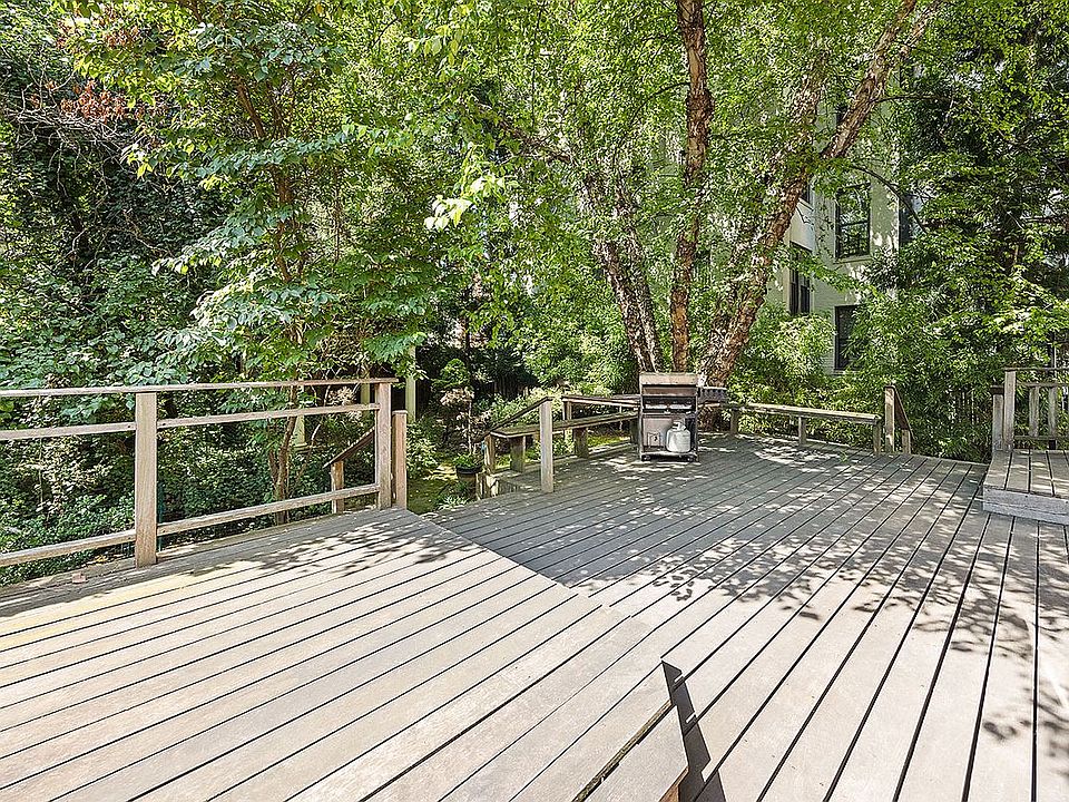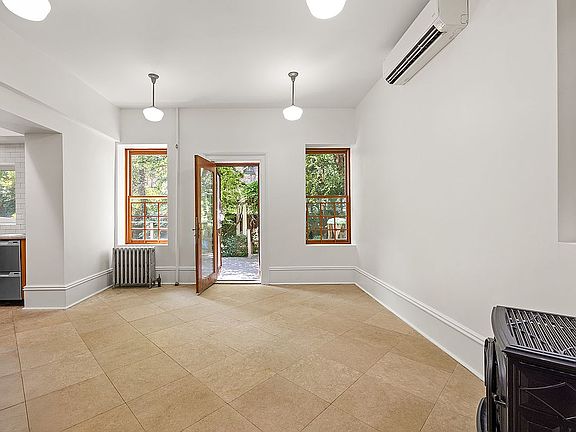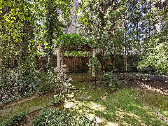 The outdoor space is a true urban retreat, offering a level of privacy and greenery seldom found in New York City. This is a unique house for sale that provides a sprawling garden sanctuary in the heart of the historic district.