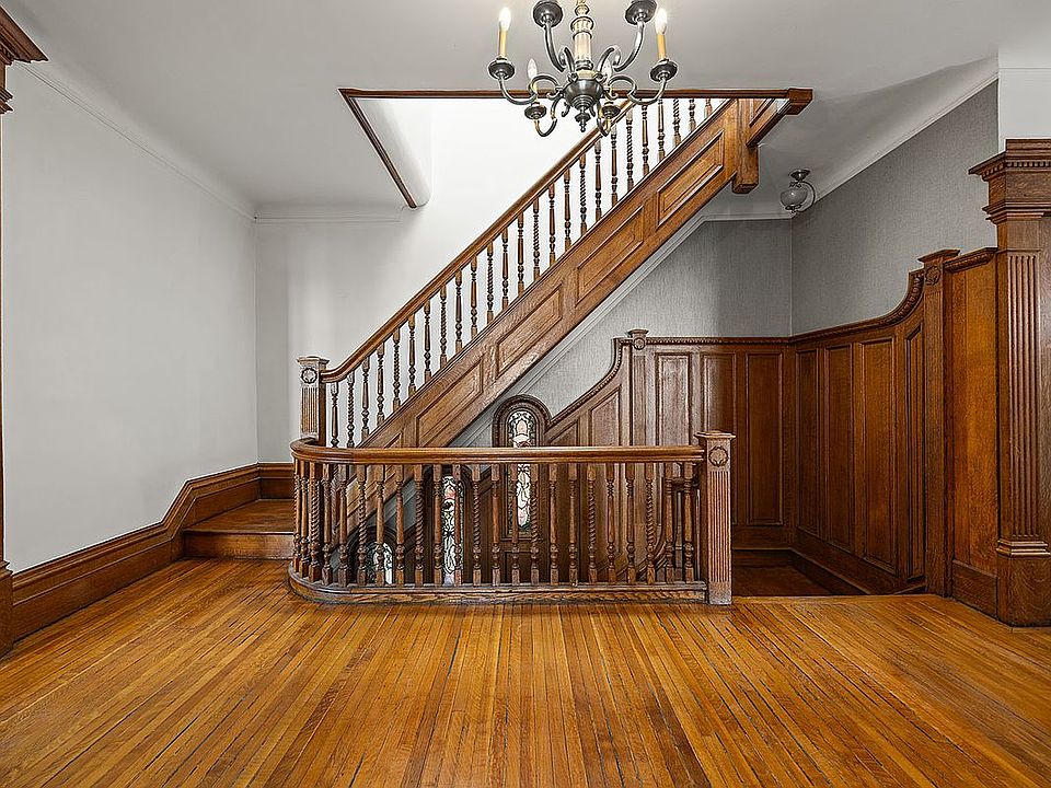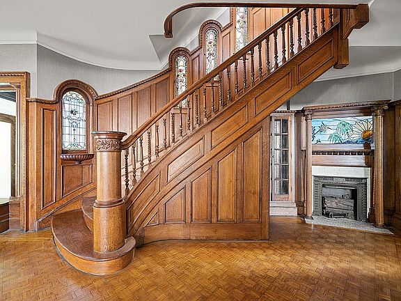 - Craftsmanship: Rich millwork, carved woodwork, and original stained-glass windows.
