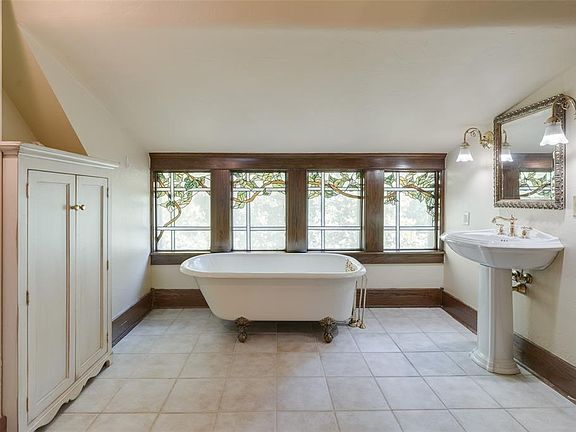 Own a piece of OKC’s architectural legacy in Historic Heritage Hills. Built in 1904, the Classic Tudor-style estate sits on .781 acre (mol) corner lot and exudes old world charm with intricate craftsmanship preserved at every turn. A grand entrance hall welcomes you with a dramatic horseshoe gallery stairwell, double return staircase and exquisite balustrades-crowned by a breathtaking 6’x9′ stained-glass window depicting peacocks.