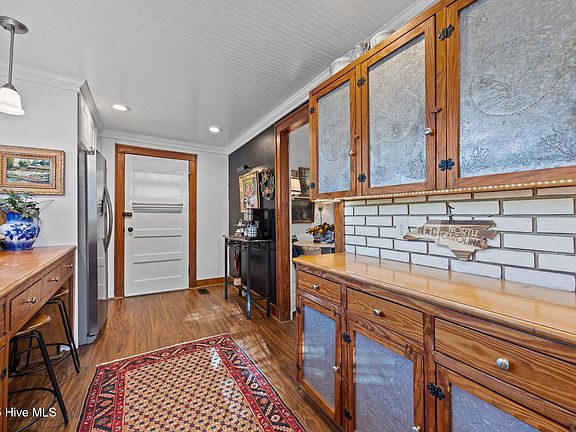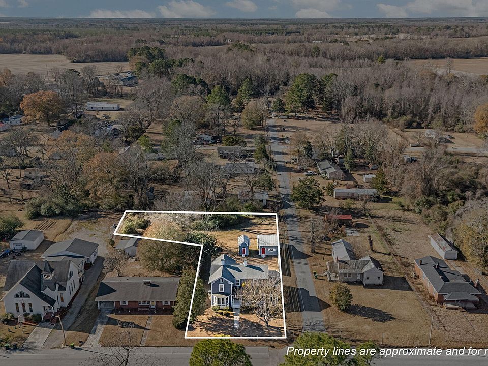 The exterior is defined by its massive wrap-around porch and historical outbuildings, all situated on over half an acre of land. This stunning property for sale provides the perfect small-town setting for anyone looking for a move-in-ready historic landmark.