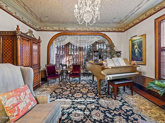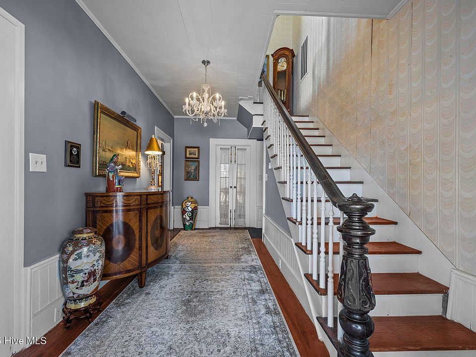 - Architectural Details: Hand-grained woodwork, original wallpaper, high ceilings, and a grand entrance foyer with an original staircase.