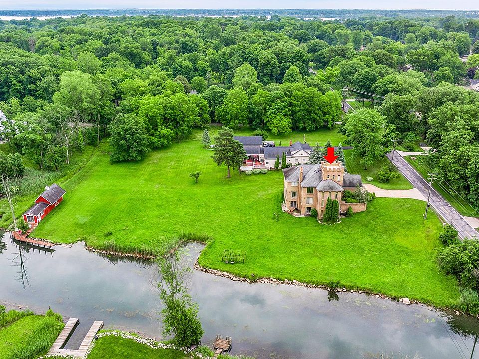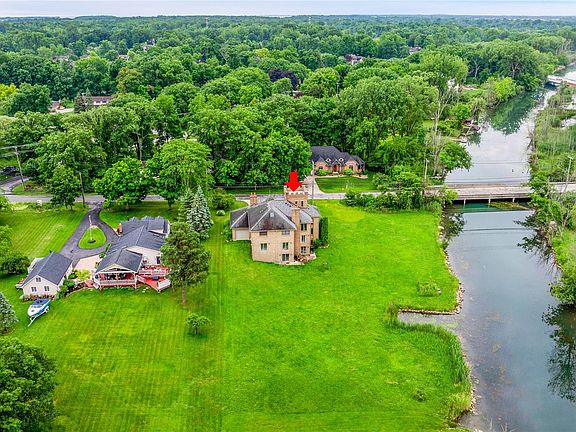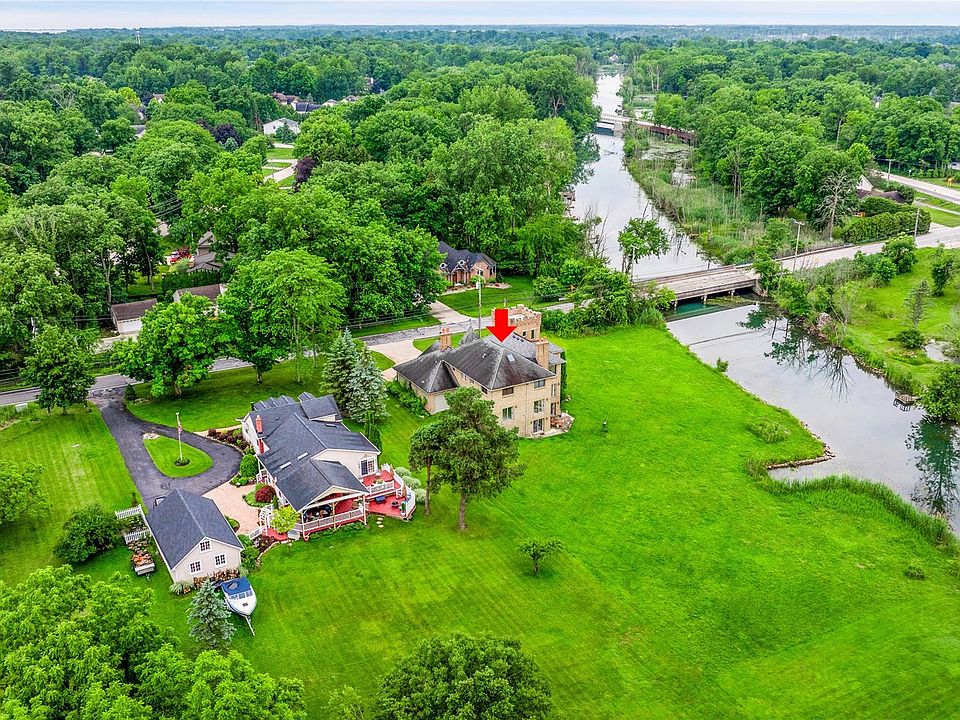 If you have ever dreamed of living in a castle but want all the comforts of a newer home, this is the one for you. This magnificent estate on Grosse Ile was built in 1995, but it was designed with a grand, old-world heart. With over 6,600 square feet of space, it feels like a royal residence from the moment you pull up to the gate. The outside is simply stunning, featuring detailed stonework and a beautiful turret that reaches toward the sky. It sits on a huge acre of land with 300 feet of water frontage right on the canal. It is easily one of the most iconic and recognizable homes on the island, offering a lifestyle that most people only see in movies.