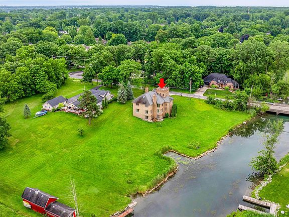 Check Out This Castle! Circa 1995 Home With Detailed Stonework In Grosse Ile, Michigan For $699,999!