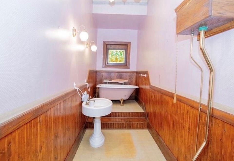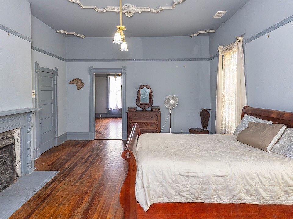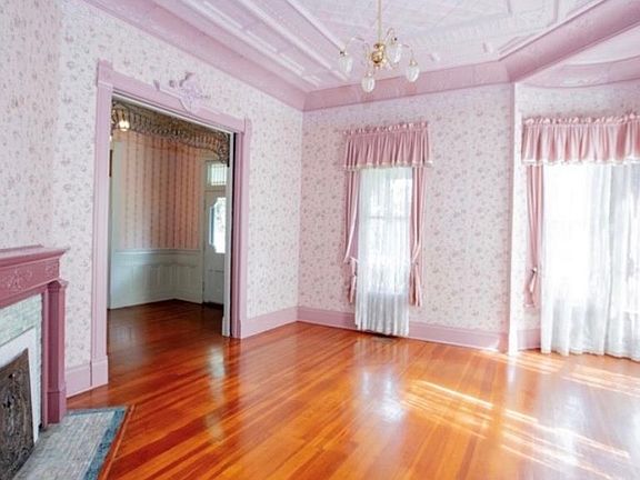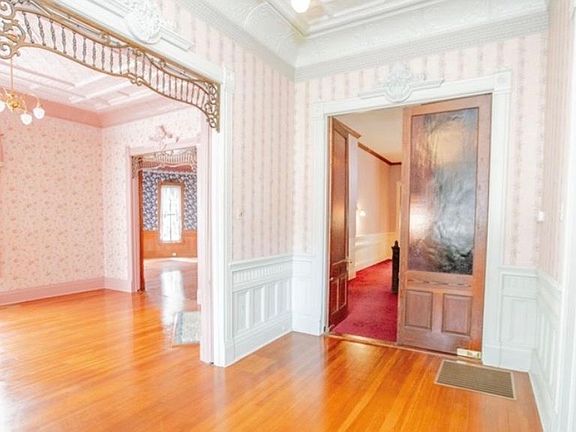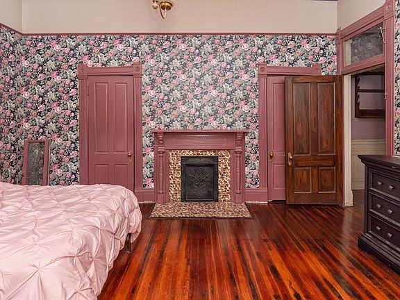 - Architectural Details: Heart pine floors, 6-inch thick wooden walls, restored metal ceilings, and original pocket doors
