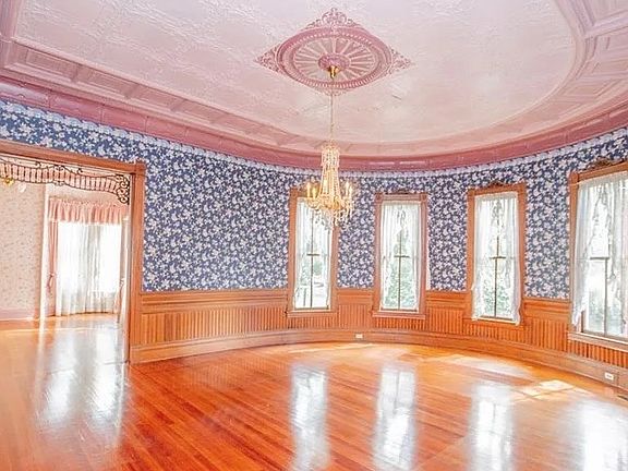 - Rooms: 14 total rooms, including formal parlors and a massive half-round dining room