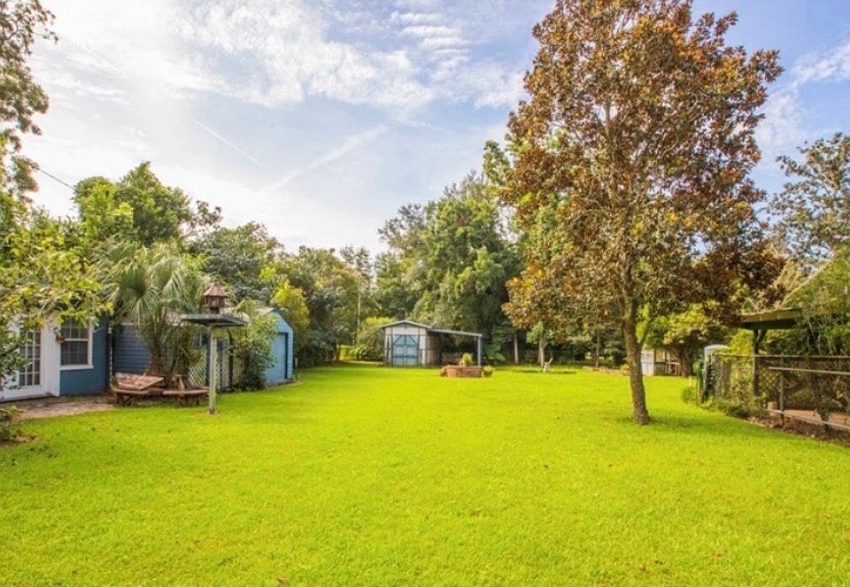 The home is connected to city water/sewer and has an irrigation well. The estate spans over a generous lot that is fully fenced (5+/- ft high chain link with multiple gates/entrances) and includes a deck with an above ground pool as well as multiple outbuildings: an unfinished wired workshop with full bath hookups (ideal for a guest cottage or studio), a second wired storage building, a barn with covered RV or boat storage, and a small greenhouse.