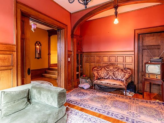 What makes this property even better is that it includes a separate townhouse side. This extra space has its own living rooms, kitchen, and a grand staircase leading to more bedrooms. You can live in the magnificent main studio and rent out the townhouse to help pay the mortgage! The current owner has already done a lot of the hard work, including installing new leaded glass windows and contracting more repairs before the sale. It is a massive, beautiful building that offers a lifestyle of art and history. You won’t find another home like this in Buffalo—or anywhere else!