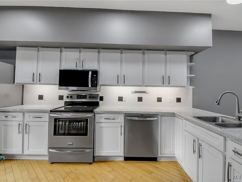 Even though the building is full of history, the inside is ready for today’s lifestyle. The kitchen is large and features sleek stainless steel appliances, perfect for cooking up a big Sunday breakfast. You also have the huge convenience of in-unit laundry, so no more trips to a basement or laundromat! One of the best “hidden” features is the private parking located right under the building. In a busy city like Buffalo, having a safe, heated spot for your car is a total game-changer. The building is also very secure and even welcomes your furry friends since it is pet-friendly.