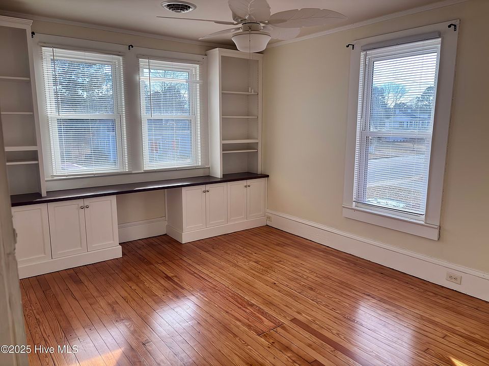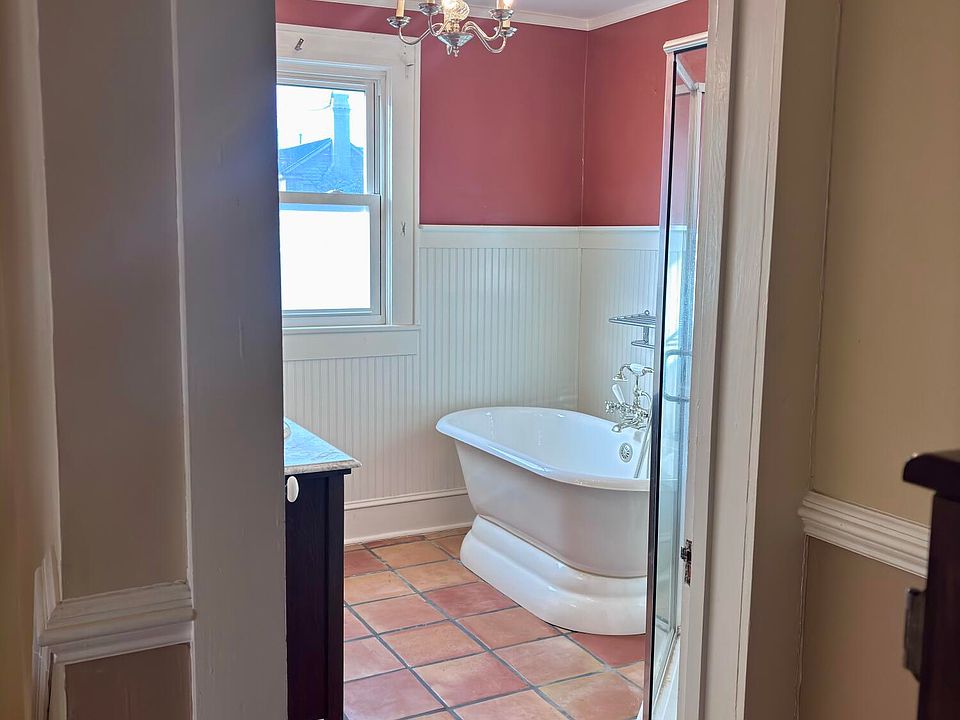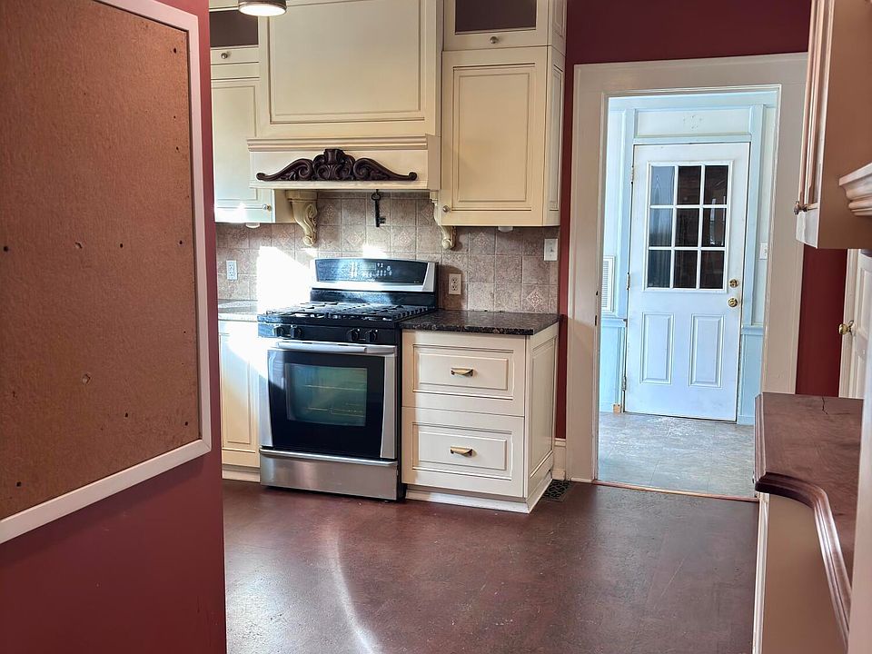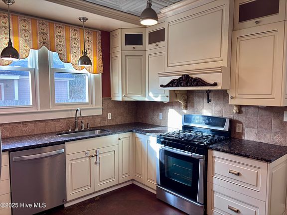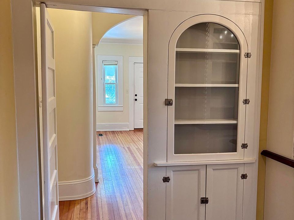Even though this house is over 100 years old, it has been updated in all the right ways. The kitchen features granite countertops, custom cabinetry, a gas stove, and a dishwasher. There is also a walk-in pantry, so you will never run out of storage space. Off the kitchen, there is a handy laundry room that serves as a side entrance, making it easy to bring in the groceries from the parking area.
